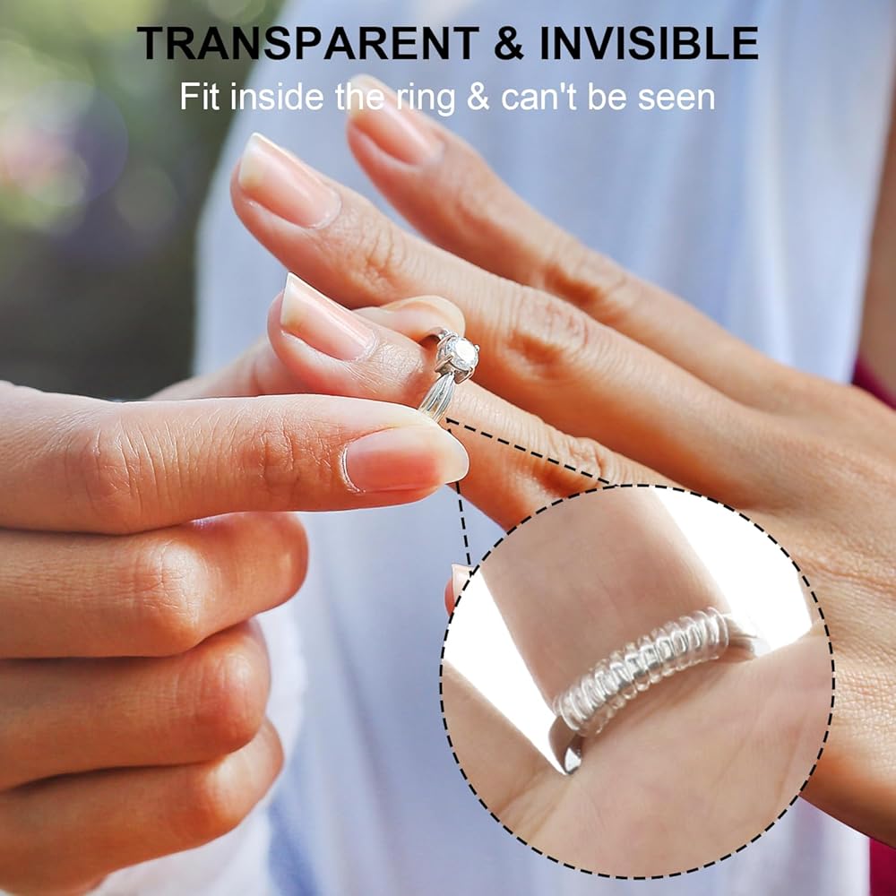 حل غير مرئي وسري: تمتزج واقيات الحلقات والفواصل لدينا بسلاسة مع حلقاتك، مما يجعلها غير مرئية عمليًا عند ارتدائها. حافظ على جمال وأناقة خواتمك المفضلة مع ضمان ملاءمة محكمة مع أداة ضبط حجم الخاتم السرية الخاصة بنا للحلقات الفضفاضة.