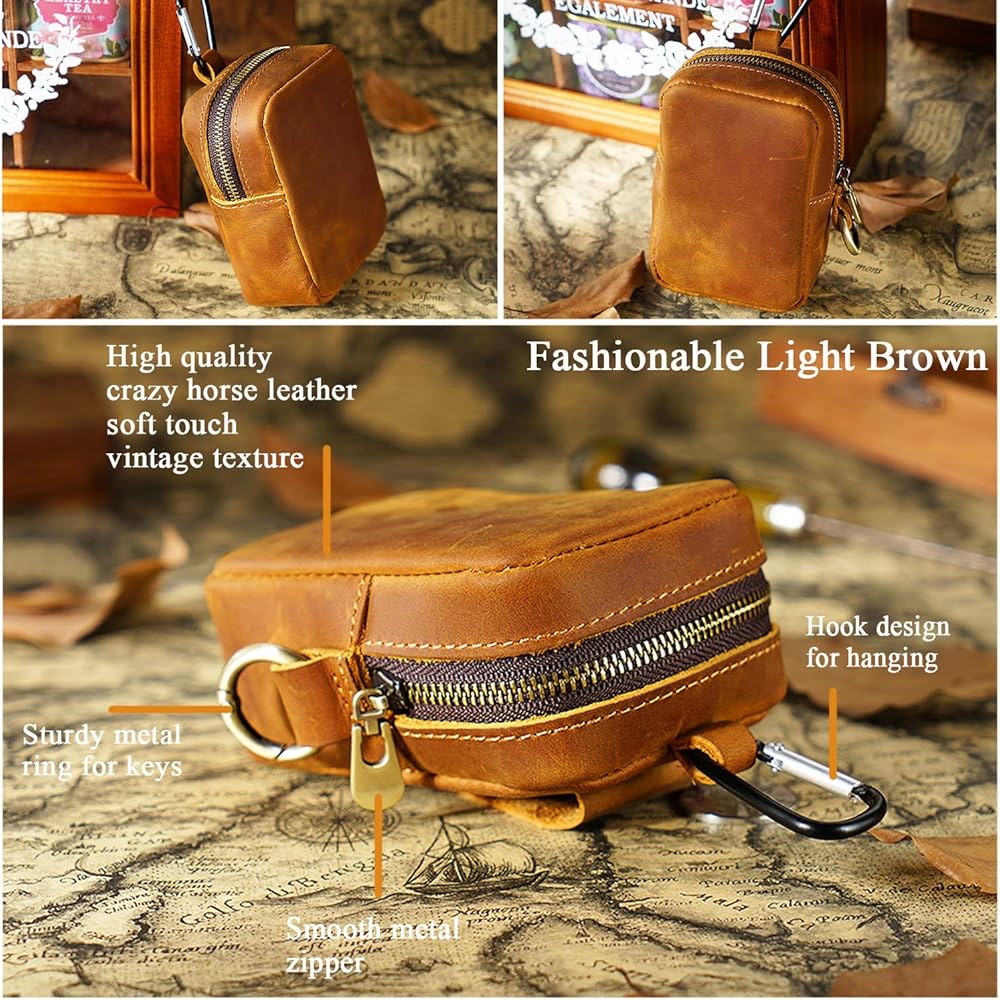 Introducing the RRBMMH Crazy Horse Leather Coin Purse, a vintage-style zipper wallet with a keychain hook. Designed to meet your storage needs, this wallet is available in three attractive colors - burgundy, deep brown, and light brown.