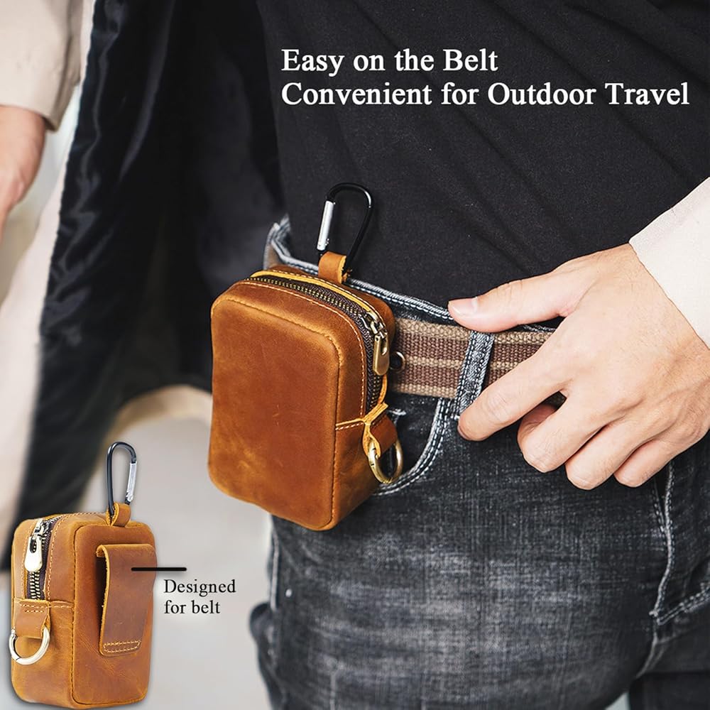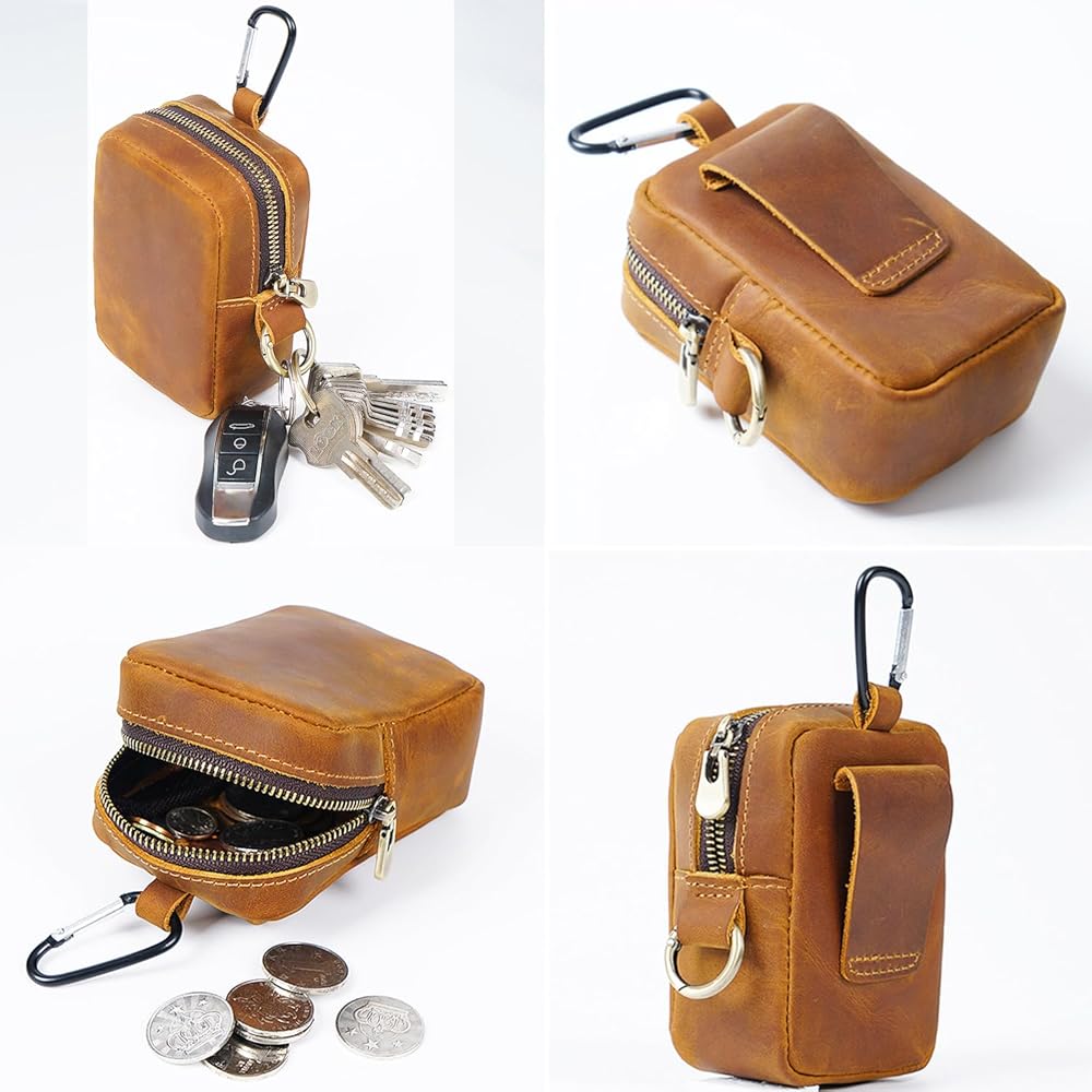 This men's leather coin purse is not only great for holding coins but also versatile enough to store keys, ID cards, bank cards or credit cards, cash, coins, lipstick, headphones, and other small daily essentials.