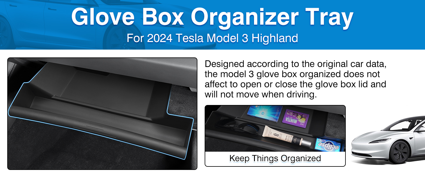 مادة TPE ممتازة: مصنوعة من مادة ABS الممتازة، صندوق منظم القفازات المرتفعات modle 3 مقاوم للخدش، عديم الرائحة ومقاوم للماء، ثابت بدون إزاحة، متين بدون تشوه.