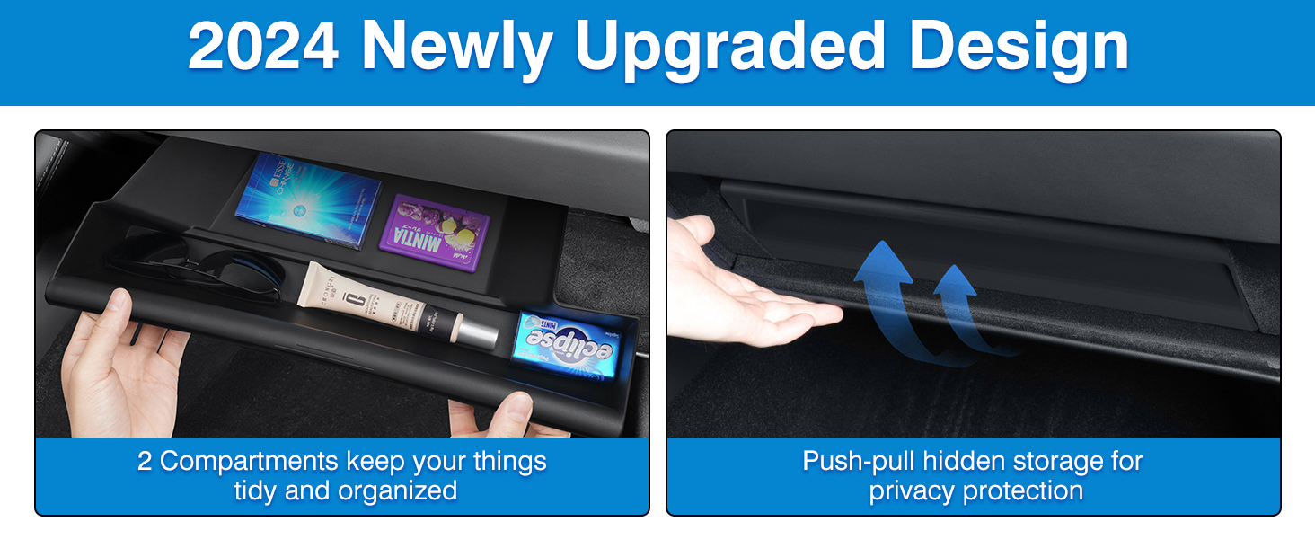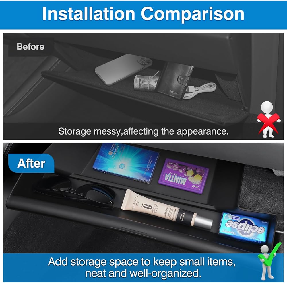 سهلة التركيب والإزالة: صينية تخزين صندوق القفازات هايلاند موديل 2024 سهلة التركيب بدون أي أدوات، فقط ضع صندوق التخزين في حجرة القفازات. وأخرجه مباشرة عندما تحتاج إلى تنظيفه.