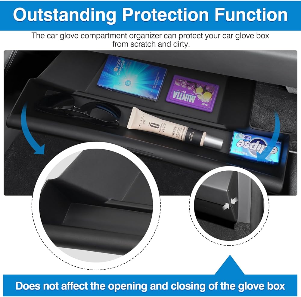 منظم وحماية مثاليين: لا تستطيع صينية تنظيم القفازات هذه الحفاظ على أغراضك الصغيرة منظمة جيدًا فحسب، بل تحمي أيضًا صندوق قفازات سيارتك من الخدوش والأوساخ. ولا يؤثر ذلك على فتح وإغلاق صندوق القفازات.