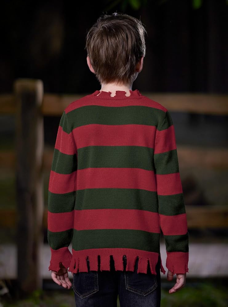 احتفل بأناقة - احتضن روح الهالوين مع هذه السترة! تتميز هذه السترة الكلاسيكية ذات الطابع المخيف بأكمام طويلة ورقبة دائرية ونمط مخطط مذهل، وتثير الأشرار الكلاسيكيين في أفلام الرعب. إنه خيار احتفالي وأنيق للاحتفال بالموسم المخيف.