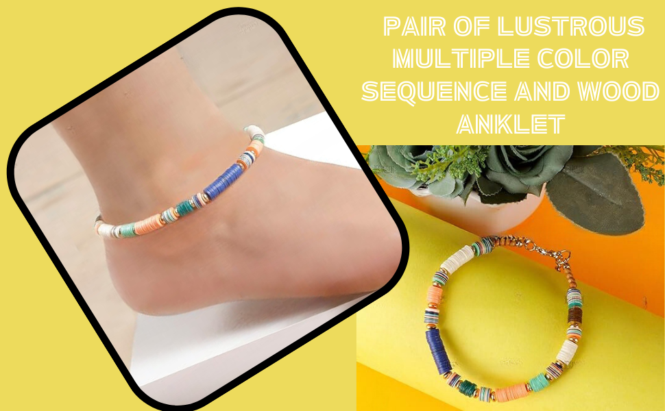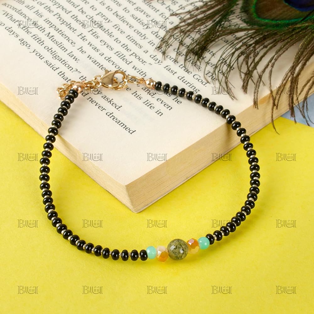 زوج من خلخال الخرز الأسود الأنيق من BiiU مصنوع من الخرز والحديد