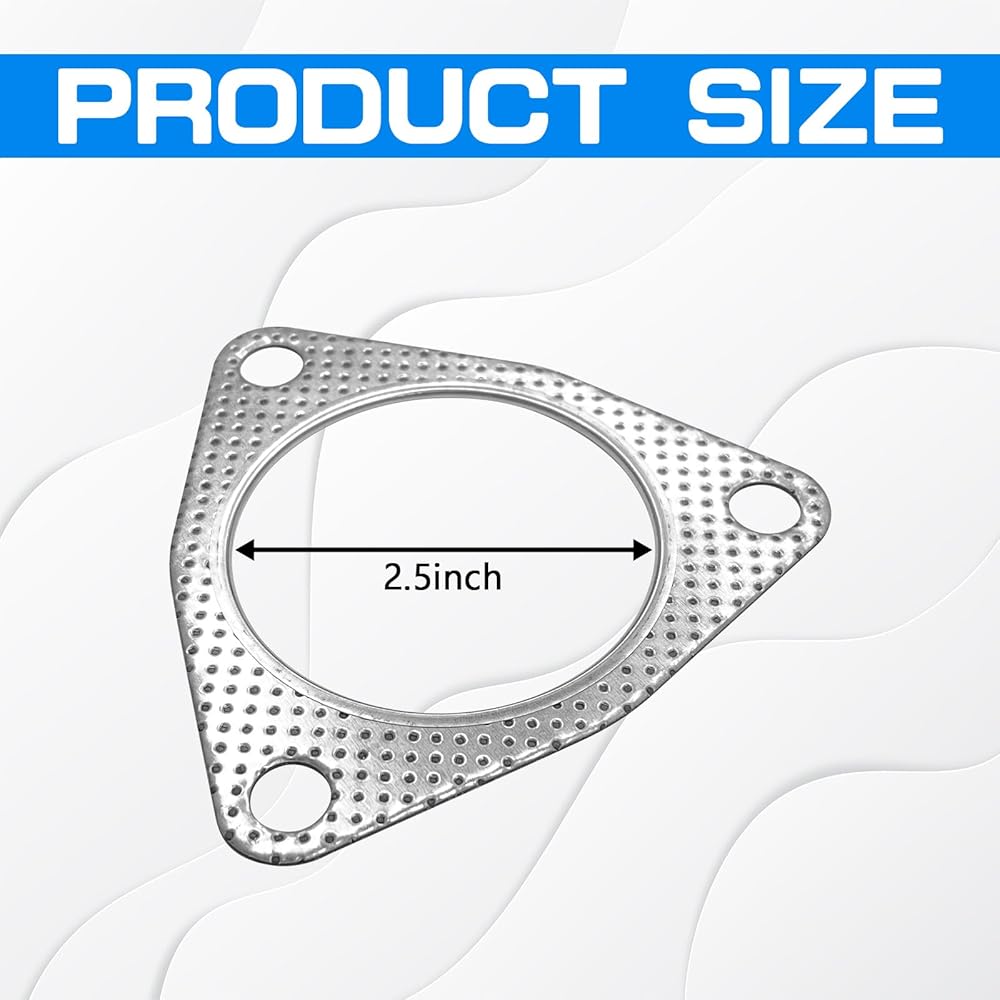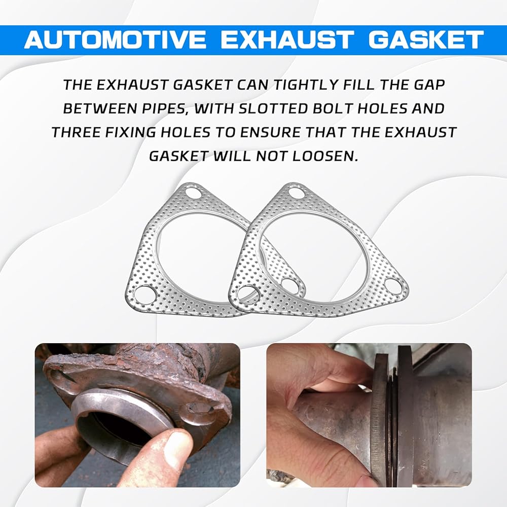 【Product Specifications】You will receive two three-hole exhaust manifold gaskets measuring approximately 2.5 inches, with an outer diameter of 4.25 inches and holes spaced 3.5 inches apart. Before purchasing, please confirm the size to prevent mismatch.