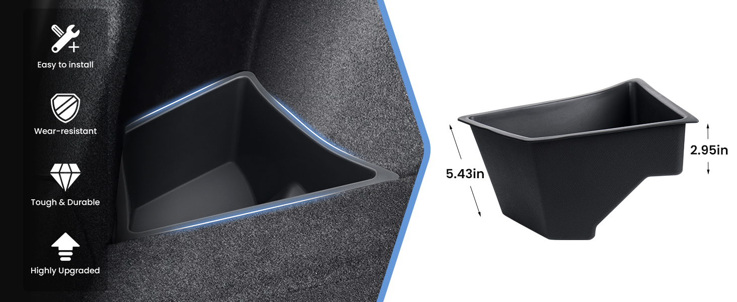 [سهل التركيب والتنظيف]: لا يتطلب صندوق تنظيم التخزين Tesla Model 3 أدوات للتركيب، ببساطة قم بتركيب المنظم في مكانه وتثبيته دون خشخشة. للتنظيف، ما عليك سوى إزالة الصندوق وشطفه بالماء.