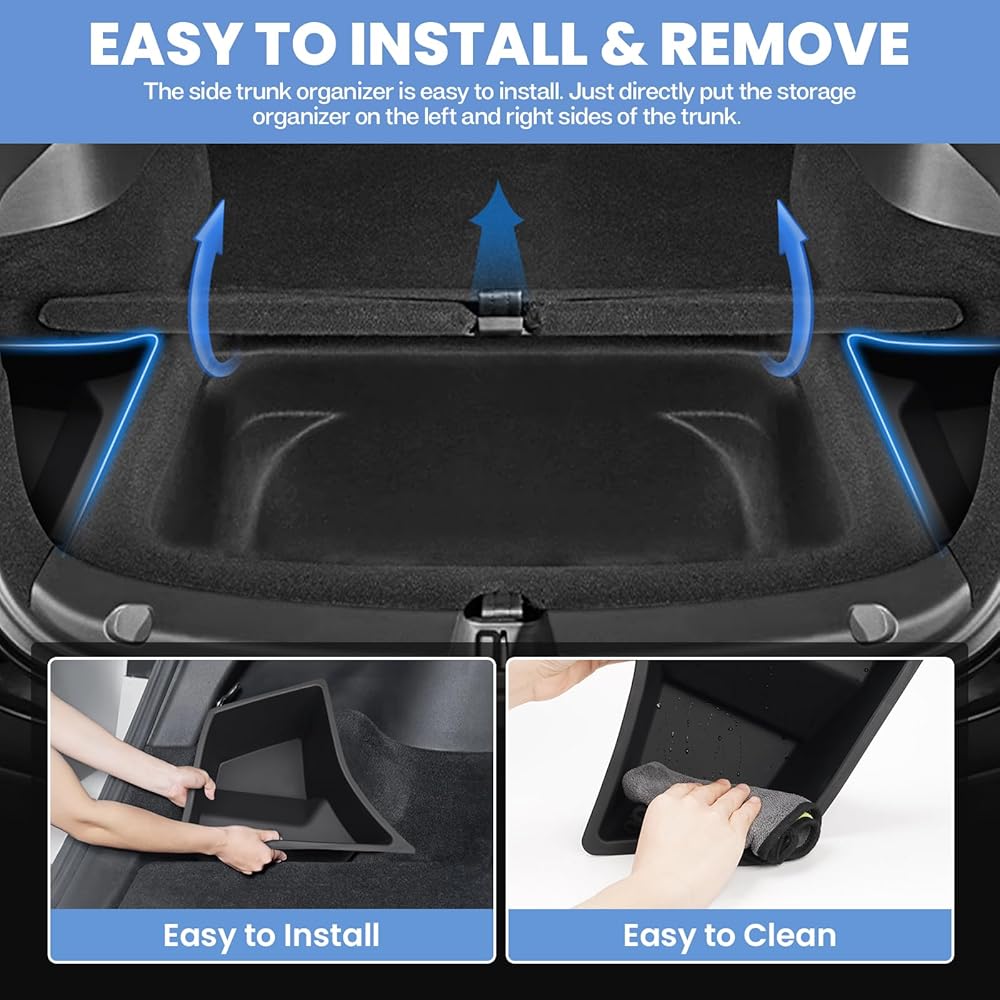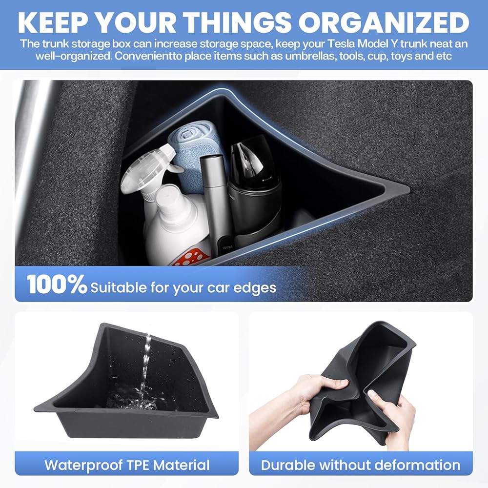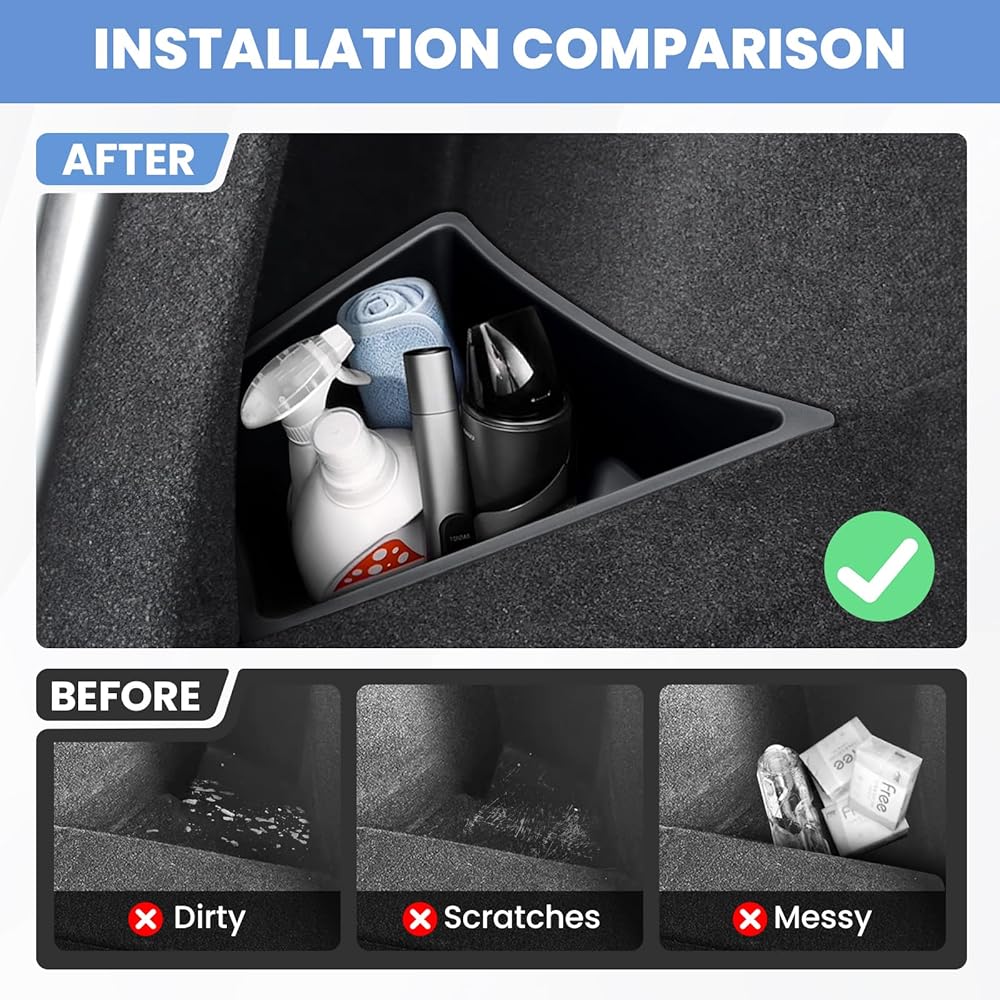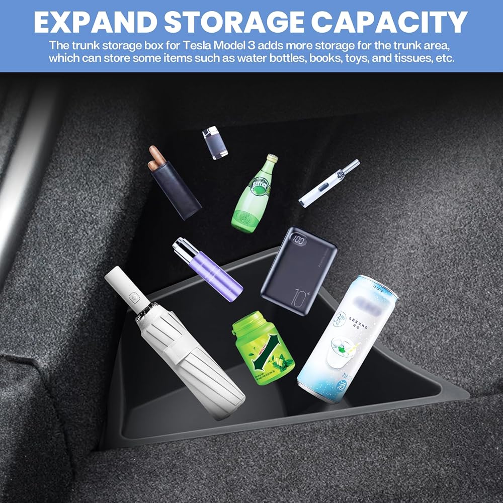 [إكمال مساحة التخزين]: يملأ صندوق التخزين الجانبي المكان الشاغر في صندوق سيارة تيسلا موديل 3، مما يمنع العناصر من السقوط أثناء حركة السيارة. يوسع مساحة التخزين الموجودة في السيارة ويمكنه تنظيم المزيد من العناصر. تخزين متعدد الطبقات لمزيد من الحماية لخصوصيتك.