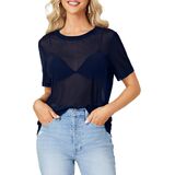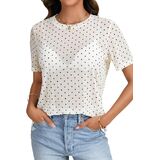 Features: Summer blouse features with a round neck, short sleeve, loose fit, mesh sheer, see through design, making you look both sexy and cute.