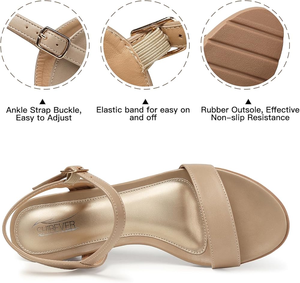 صنادل نسائية من SHIBEVER بكعب عريض مريح: صندل بحزام للكاحل بإبزيم - صنادل عارية للنساء - مقاس صيفي أنيق 10