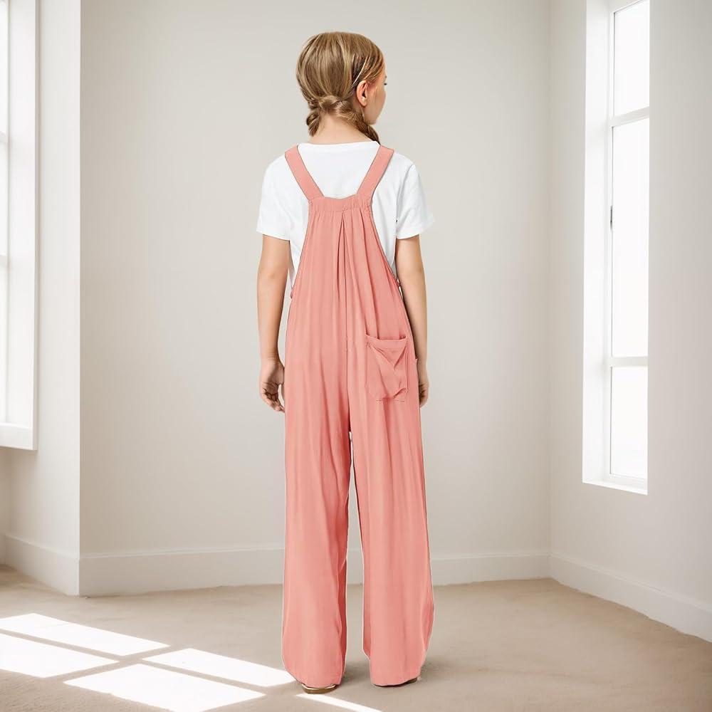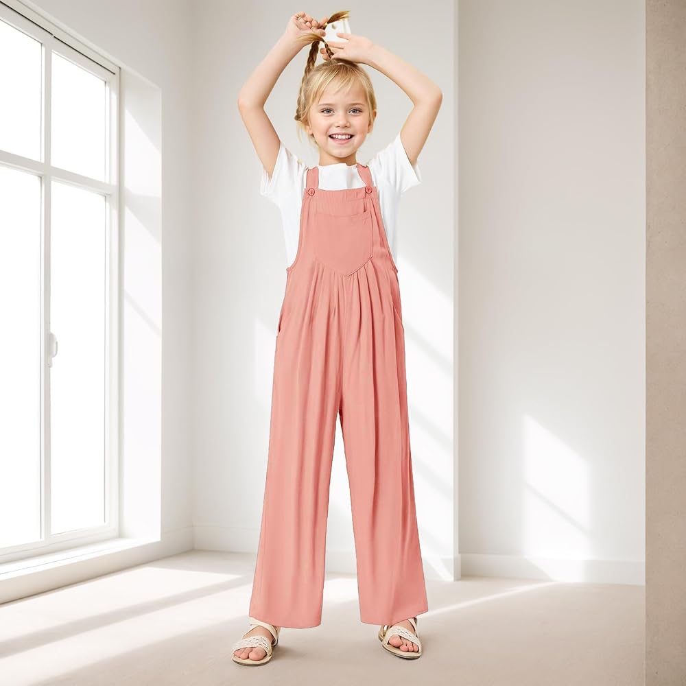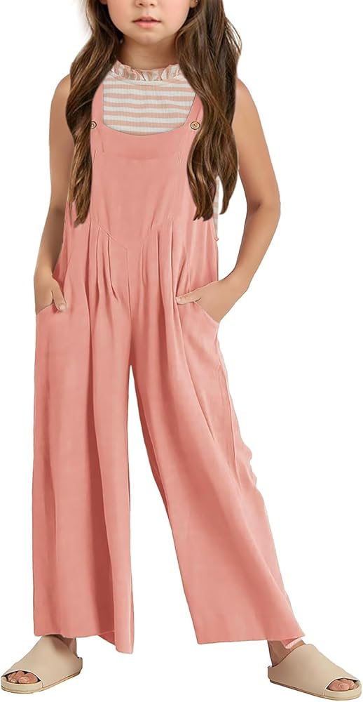 • 【UNIQUE DESIGN】JIAMY girls jumper features adjustable button straps, U neck, sleeveless, high waist, loose wide leg and solid color design. Four hidden pockets on the front, back, left and right can store candy, toys, cell phones and more. It is ideal for kids to dress up pretty and personalized.