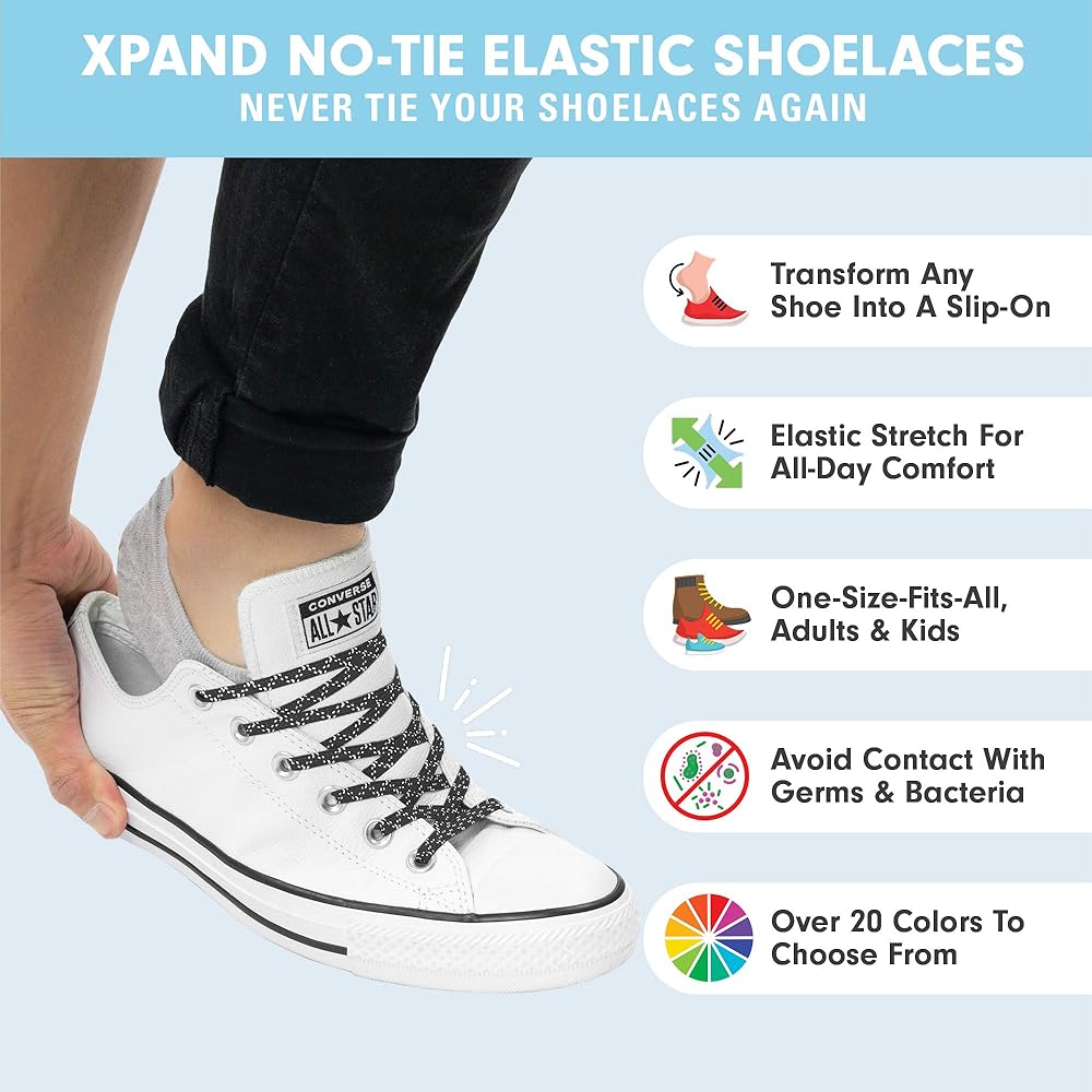 • بسيط ومريح: ما عليك سوى تثبيت أربطة الأحذية المرنة Xpand الخاصة بك مع الشد المرغوب فيه والانزلاق بدون متاعب يومًا بعد يوم. لا داعي للقلق أبدًا بشأن الأربطة غير المربوطة مرة أخرى!