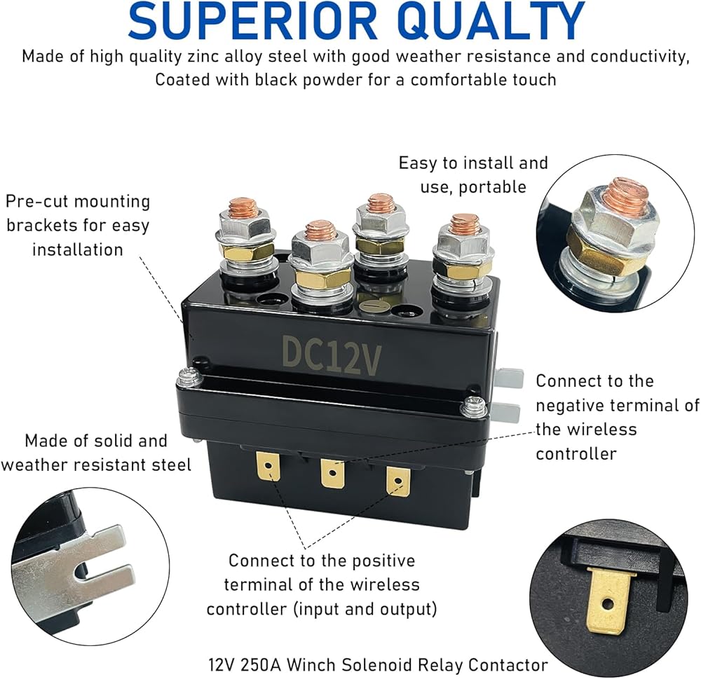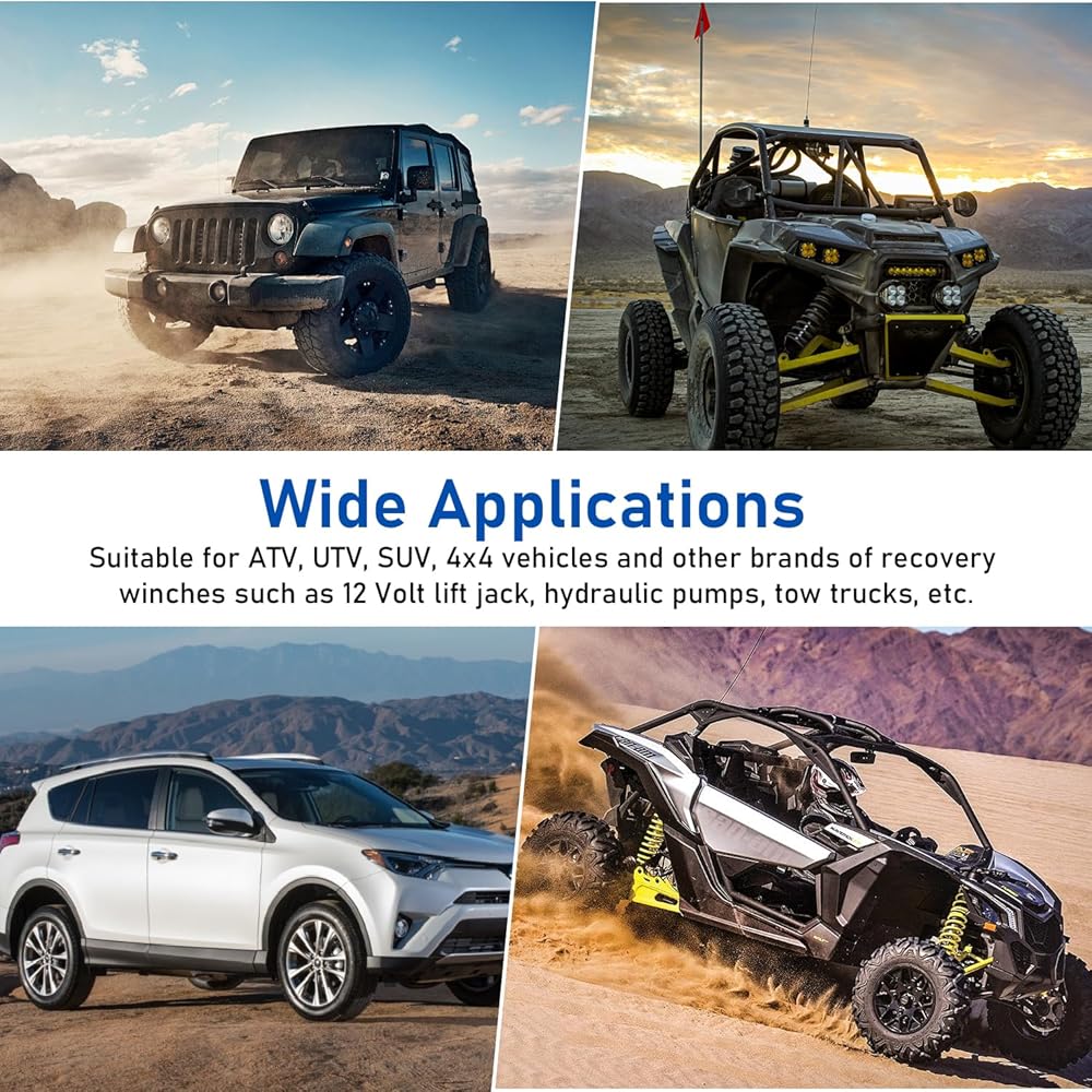 متوافق مع معظم أنظمة الرافعة DC 12V 250A، بما في ذلك تلك الموجودة في ATVs وUTVs وSUVs و4x4