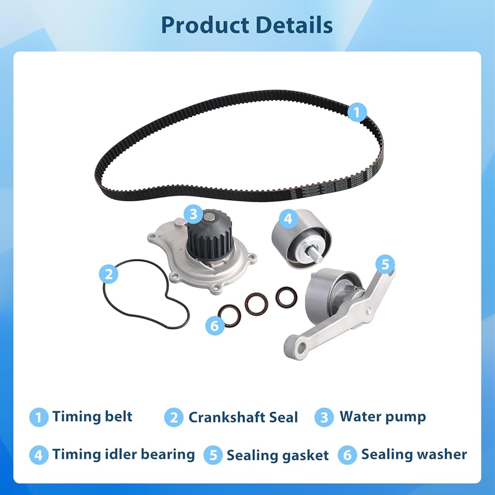 【مناسب تمامًا لسيارتك】تم تصميم مجموعة حزام التوقيت هذه لكرايسلر سيروس 1995-2000، لكرايسلر بي تي كروزر 2001-2002، لكرايسلر سيبرينغ 1996-2002، لكرايسلر فوييجر 2000-2002، لجيب ليبرتي 2002-2002، ل دودج كارافان 1996-2002، لدودج جراند كارافان 1996-1997، لدودج ستراتوس 1995-2002، لبليموث بريز 1996-2000، لبليموث جراند فوييجر 1996-1997، لبليموث فوييجر 1996-2000. كن مطمئنًا أن هذه المجموعة سوف تندمج بسلاسة في نظام محرك سيارتك.