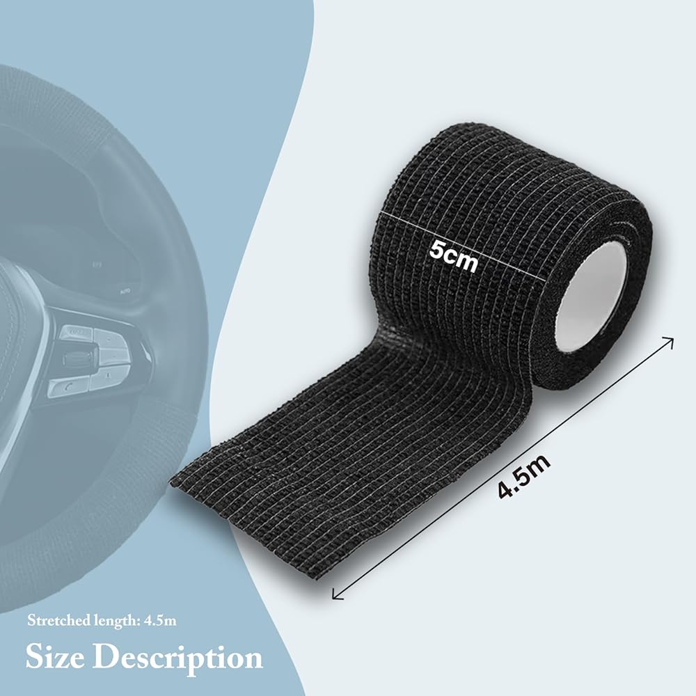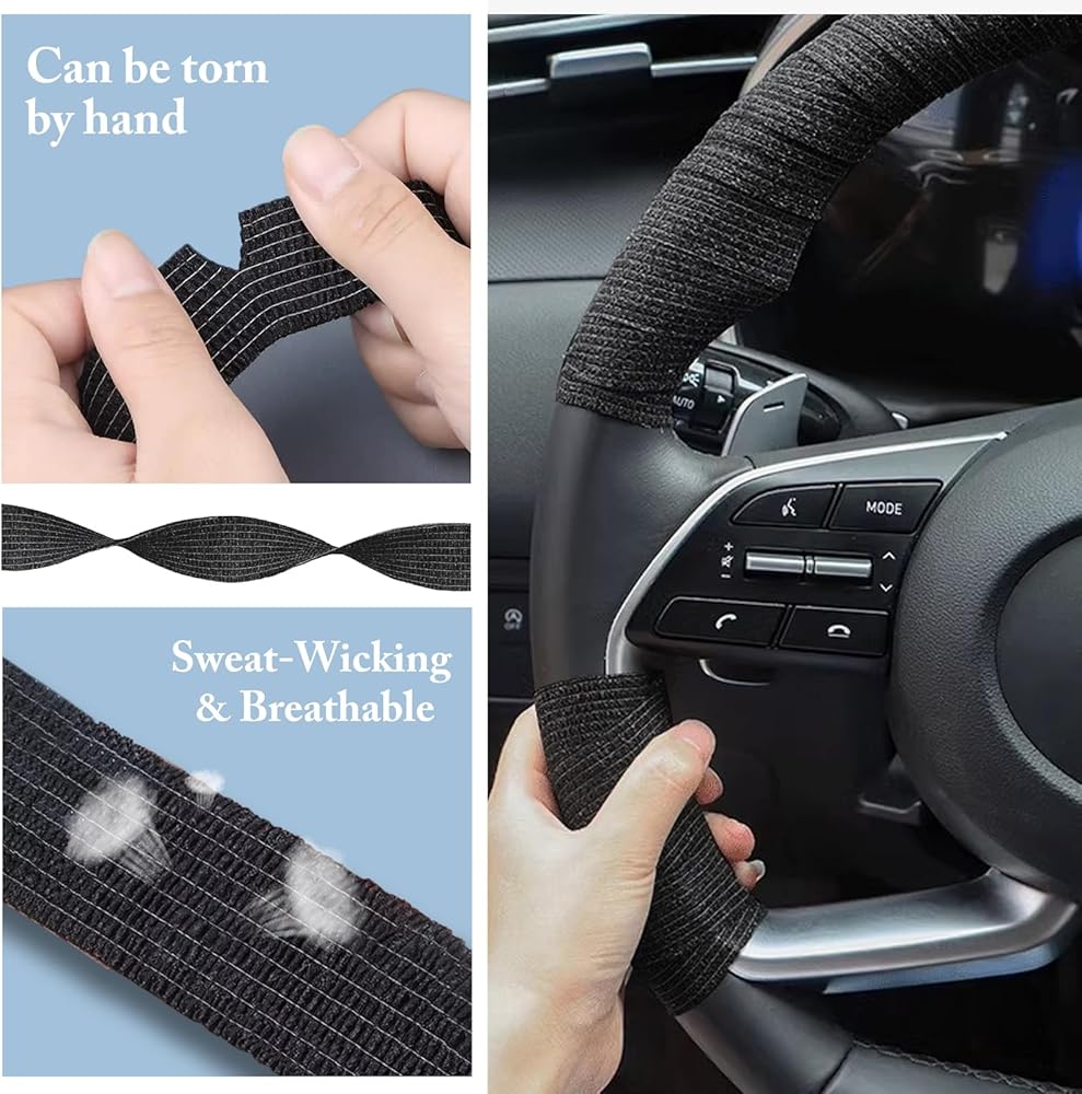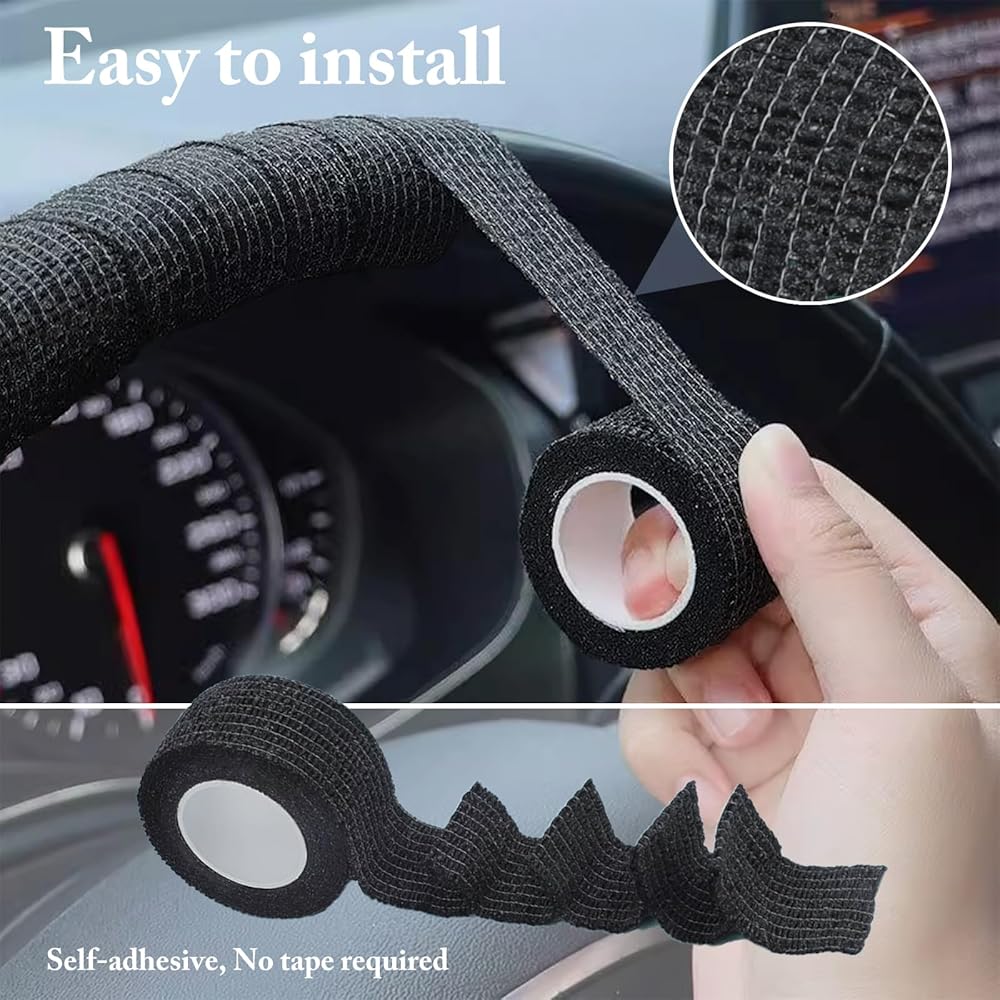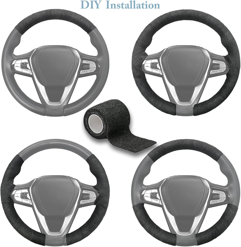Installation: Black steering wheel cover is made of non-woven fabric, its self-adhesive property makes it can stick to itself during the wrapping process for quick installation.