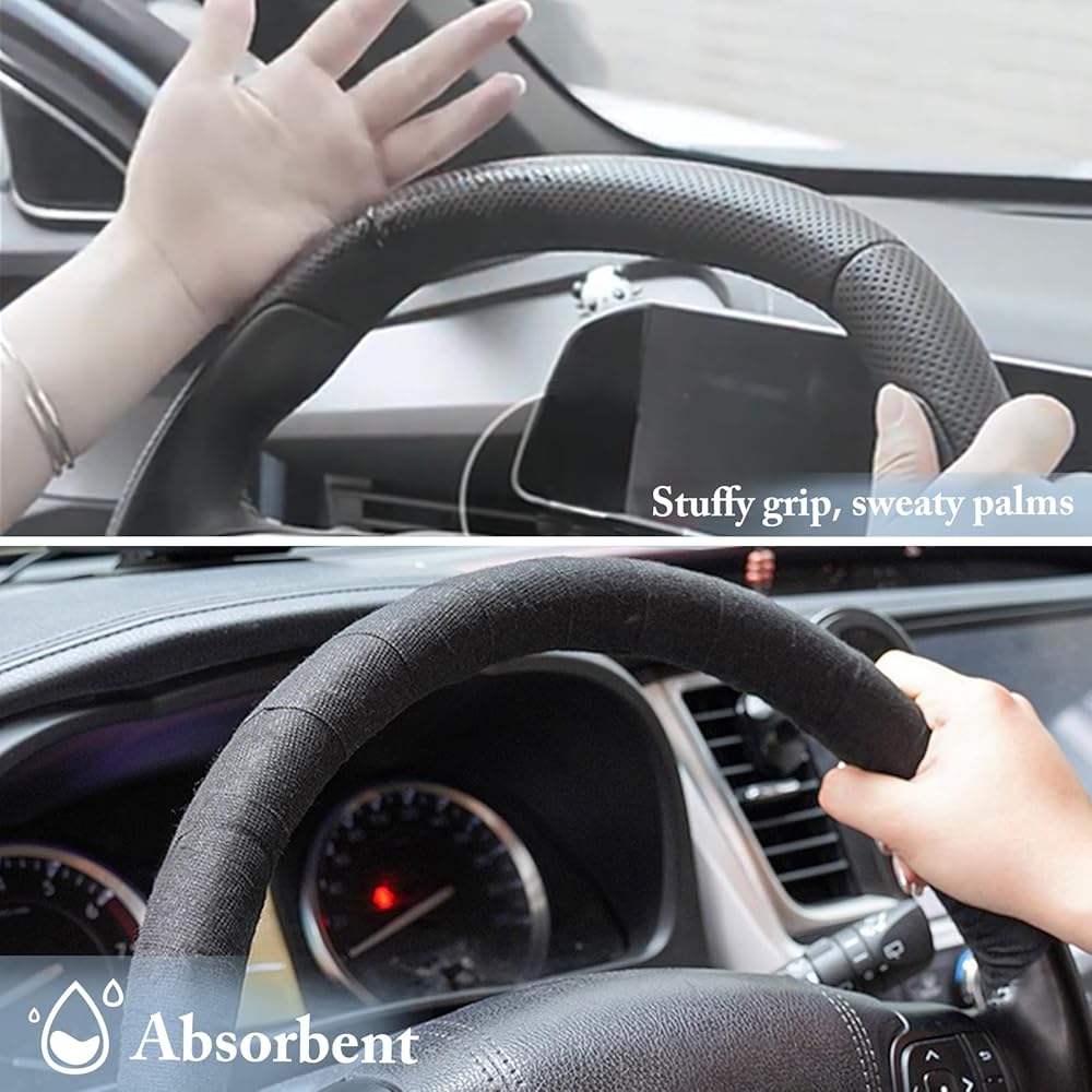 Practical: Lightweight non-woven fabric steering wheel cover for women and men absorb sweat, breathable, non-slip, installed on the steering wheel in a wrap-around way, will not leave any marks when removed.