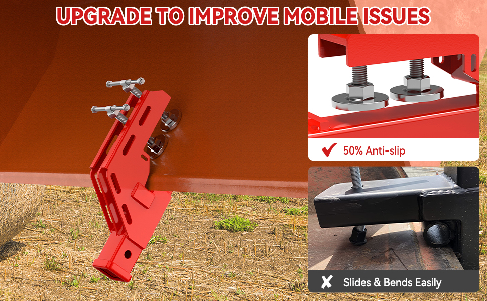 مواد شديدة التحمل ومتينة: المشبك الموجود على وصلة وصل الدلو مصنوع من هيكل فولاذي عالي التحمل؛ لمسة نهائية مطلية بمسحوق أحمر لامع قوي؛ استخدام خارجي طويل الأمد، لا يصدأ؛ يبقى المشبك الموجود على وصلة الاستقبال لجرافة الجرار مستقيمًا على دلو اللودر، ولن يهتز يسارًا أو يمينًا، ويتمتع بخدمة طويلة العمر، ويجعل المستقبل مستقرًا