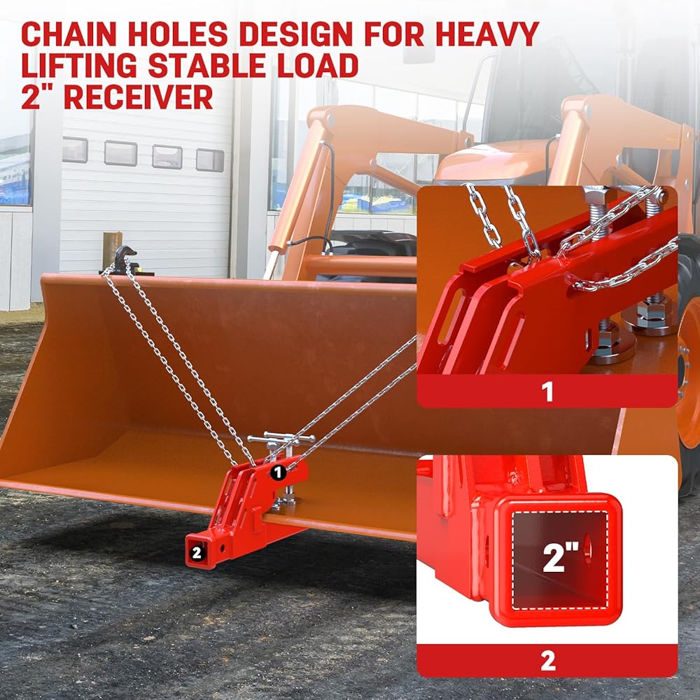 سهلة التركيب: يتم استخدام وصلة وصلة استقبال دلو الجرار لجهاز التغيير السريع في الجزء الأمامي من جرار الدلو؛ يمكن تثبيته بسرعة على دلو الجرار الخاص بك في ثوانٍ؛ مشبك Sulythw الموجود على جهاز استقبال وصلة المقطورة يوفر لك الوقت والطاقة