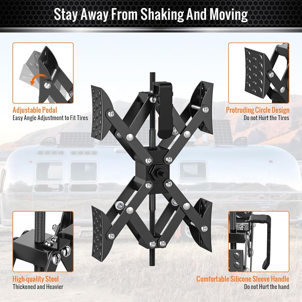 هيكل قوي ومستقر: تصميم Sulythw المحدث على شكل حرف X متعدد الارتكاز والبنية الصلبة يجعل مثبت قفل العجلة RV يعمل بشكل أكثر ثباتًا بين الإطارين. يتم التخلص من حركة التأرجح من الأمام إلى الخلف من خلال تطبيق قوة مضادة. سواء كانت على منحدر بسيط أو أرض وعرة، ستبقى عربة سكن متنقلة ثابتة. حافظ على مقطورة السفر الخاصة بك مستقرة ومريحة وآمنة.