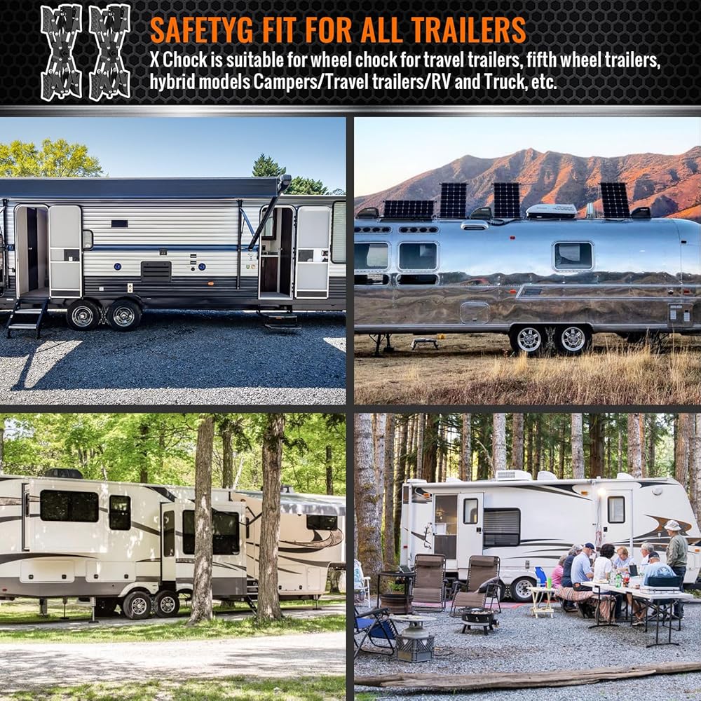 لا تؤذي الإطارات - أكثر استقرارًا: مثبت عجلة تشوك على شكل X لمقطورات السفر مصنوعة من الفولاذ عالي الجودة، سميك وثقيل، مضاد للتآكل، مناسب للاستخدام في الهواء الطلق. تصميم دواسة قابل للتعديل ليناسب منحنى الإطار بشكل أفضل. تتميز دواسة صدمات عجلة RV بتصميم مضلع مرتفع لزيادة الاحتكاك، وتمنع انزلاق مقطورات السفر وتحافظ على ثبات إطارات التخييم RV. فهي توفر ثباتًا أفضل دون إتلاف إطارات RV.
