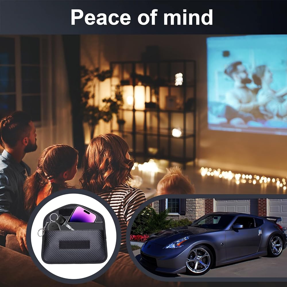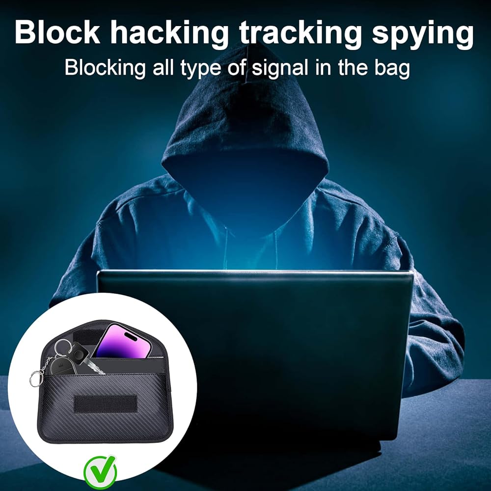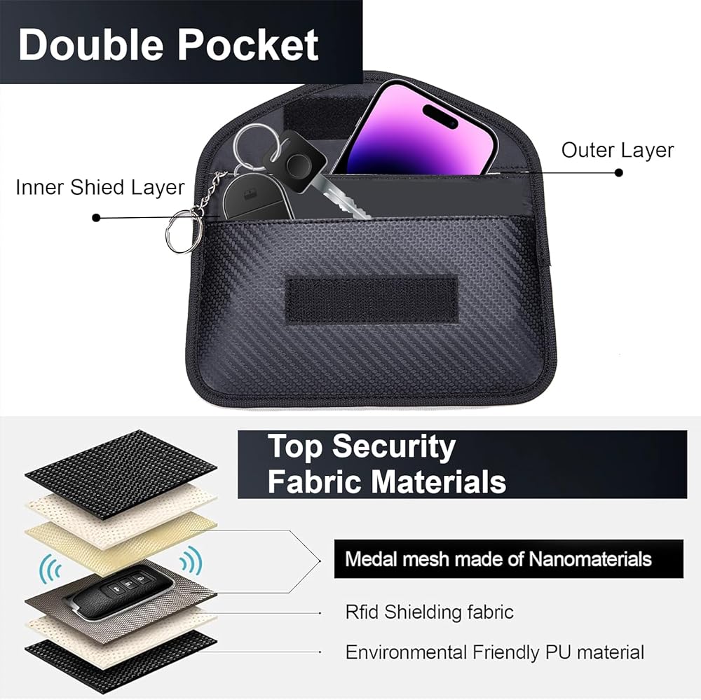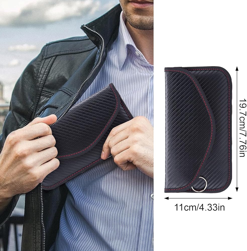 The faraday bag is made of high-quality material and perfect design, can be used as a wallet case at the same time. You can put your ID card, bank card such as IC magnetism card into the bag, it can avoid magnetism lost and info leak. And it can also block GPS andamp; car-key signal to prevent tracking, ensure your car's security system from getting hacked, protect your privacy.
