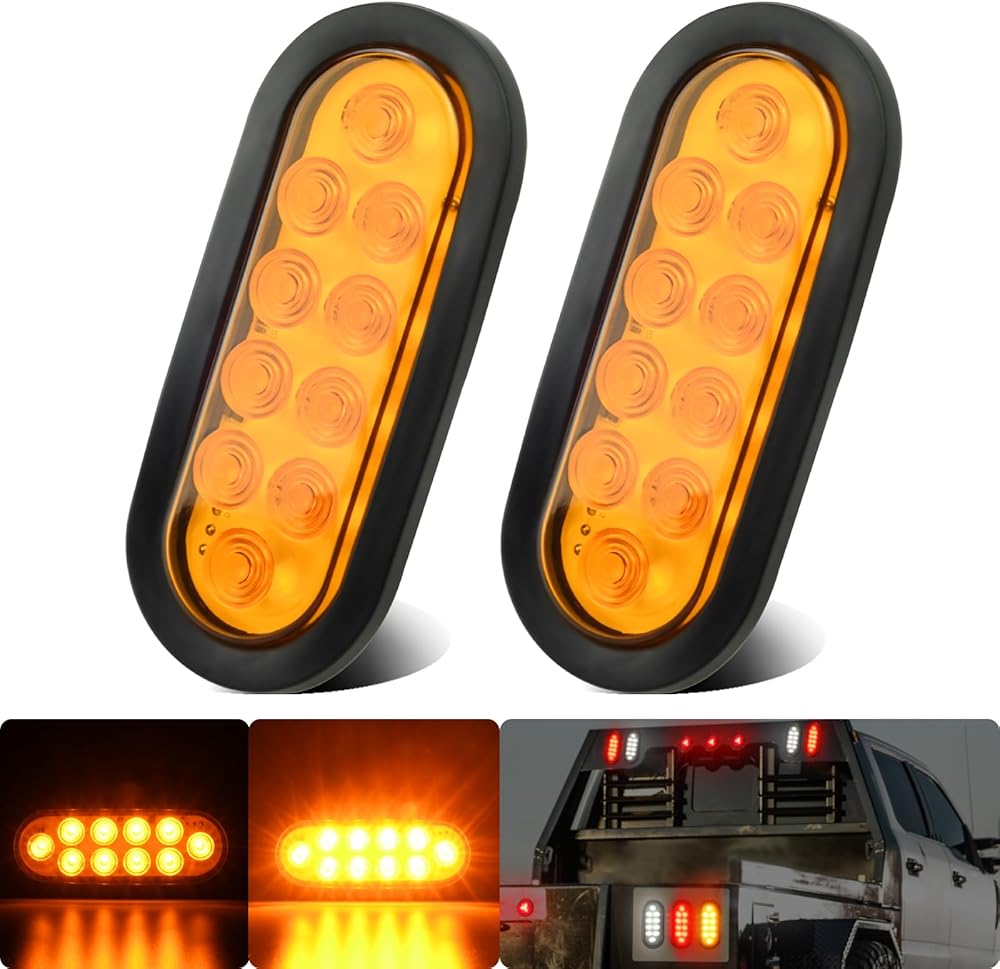 2 قطع 6 بوصة بيضاوية LED مقطورة مسطحة بيك اب شاحنة بدوره إشارة وقوف السيارات الذيل ضوء ماركر أضواء العنبر 10 المصابيح ث / حلقة مطاطية مختومة للماء IP67 ل RV / فان، DC 12V