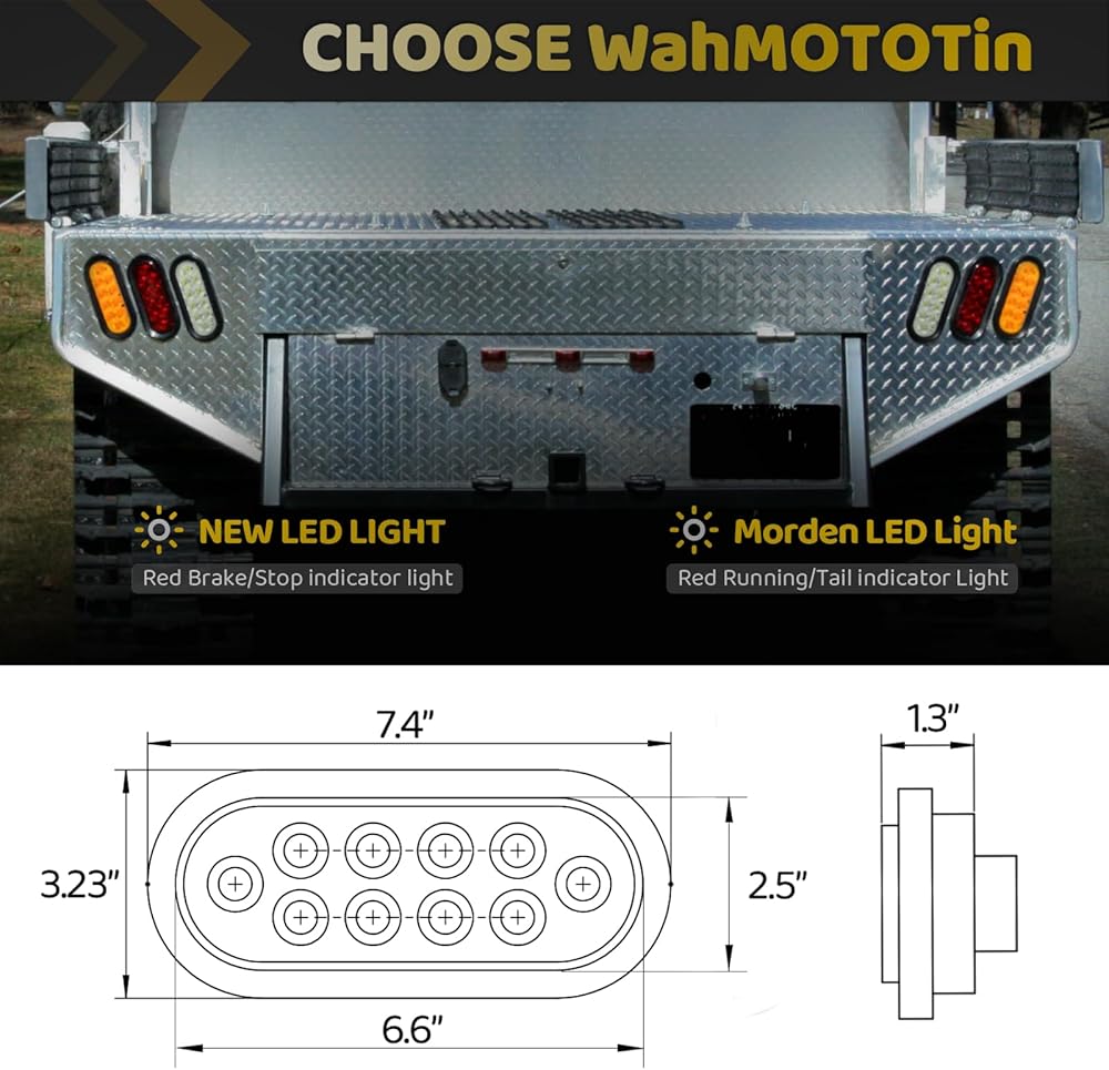 • كيف يعمل: تم تصميم هذا المنتج ليكون سهل التثبيت ويمكن عادةً تركيبه باستخدام أجهزة التثبيت أو الأقواس. يتم ترميز مجموعة الأسلاك الكهربائية بالألوان على النحو التالي: السلك الأبيض سالب (-)، والسلك الأحمر مخصص للسطوع العالي لضوء إشارة الانعطاف، والسلك الأسود مخصص للأضواء الخلفية لوقوف السيارات وأضواء التحديد. وبشكل عام، فهو يساعد على تحسين رؤية وسلامة المقطورات/الشاحنات على الطريق.