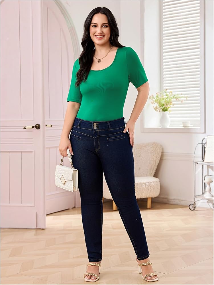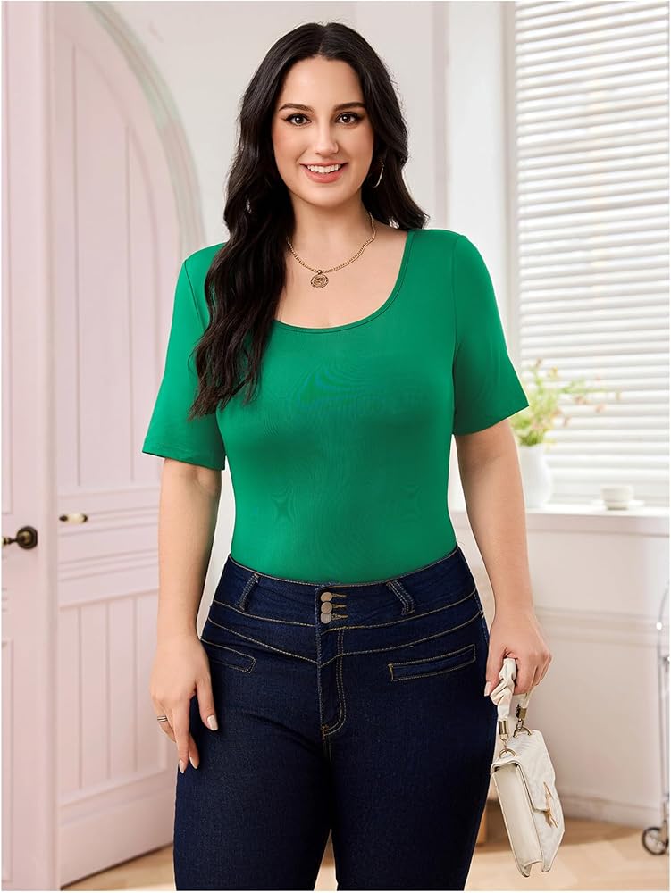 Design: This plus size basic bodysuit for women with short sleeve and square neck, make you feel more at ease,helps you look great and charming on the whole
