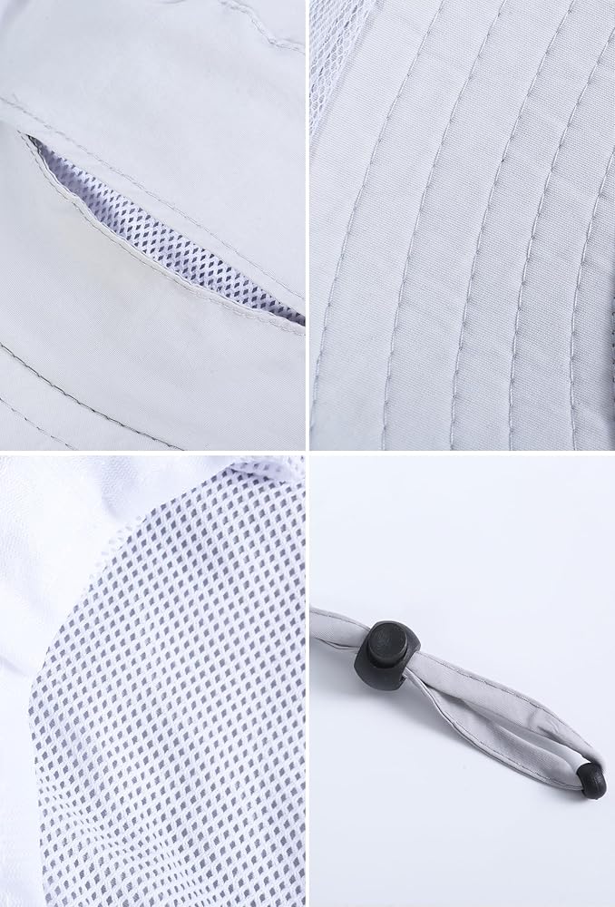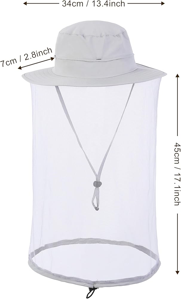 Design: The netting can not be removed. You can roll the netting over the hat brim. The fishing hat have a windproof rope, avoid blowing it off.