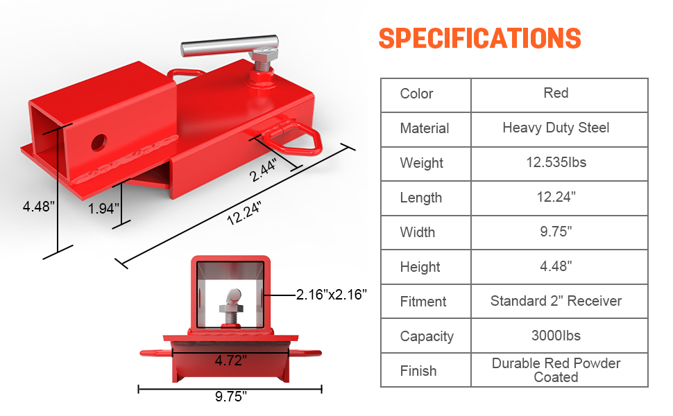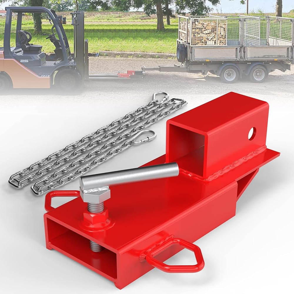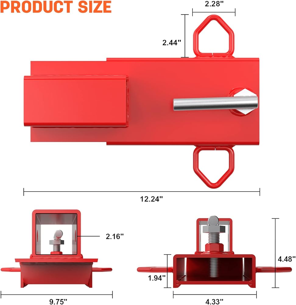 جيدة الصنع وقوية: وصلة استقبال الرافعة الشوكية مصنوعة من هيكل فولاذي عالي التحمل؛ لمسة نهائية مطلية بمسحوق أحمر لامع قوي؛ استخدام خارجي طويل الأمد، لا يصدأ أو ينحني أو ينكسر بصعوبة؛ مع سلسلة أمان متينة ومقبضين لتثبيت الشوكات، مما يضيف الثبات والأمان للمقطورات المتحركة