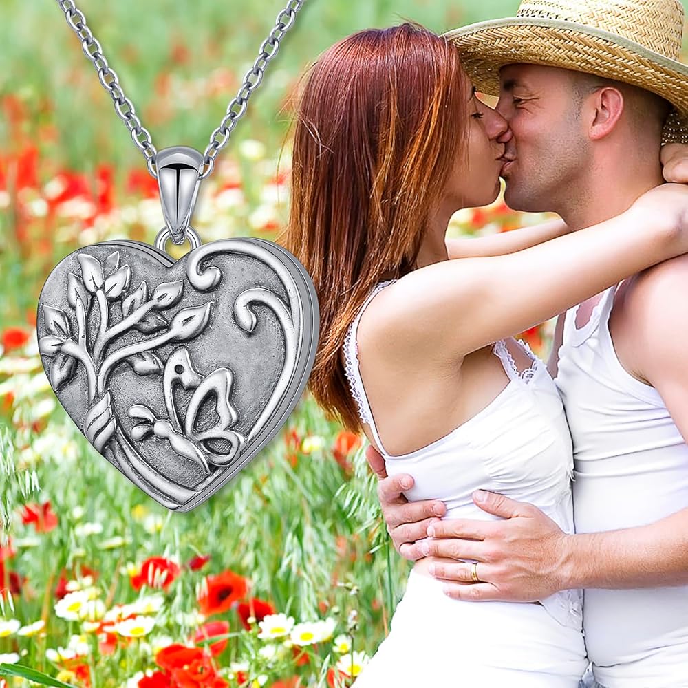 ♥ قفل شجرة الحياة ♥ مستوحى من الطراز العتيق وأنيق جدًا، هذه القلادة على شكل قلب يعلوها نمط فراشة في المنتصف. التصميم على شكل قلب، والسطح الأسود المؤكسد، ونمط الفراشة المحفور بالليزر يجعل تأثير مدلاة الصورة أكثر حيوية ورجعية. يمكن للقلادة على شكل قلب تخزين صورة أو صورتين تحبهما. تحويل الصور المفضلة لديك إلى ذكريات أبدية.
