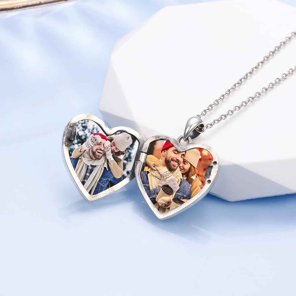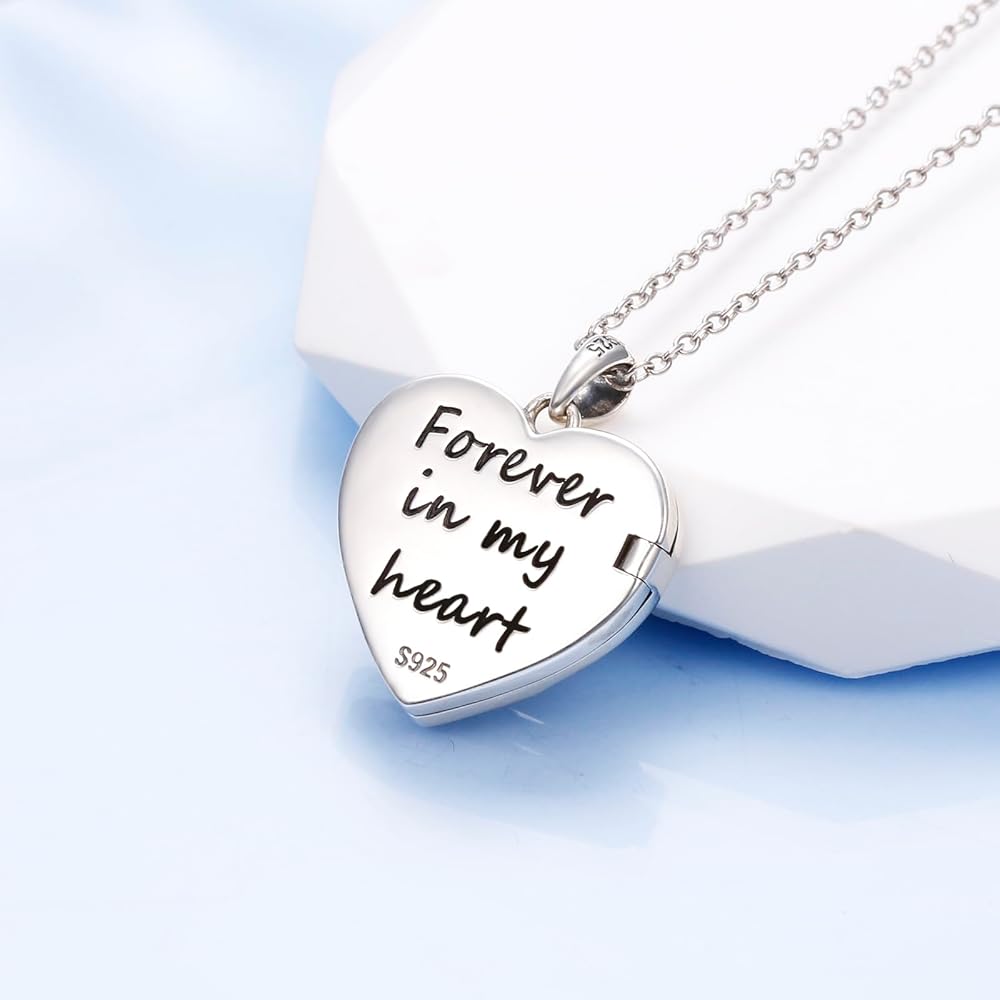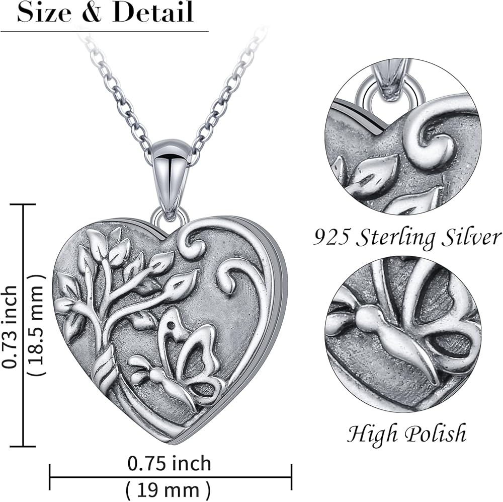 DAOCHONG شجرة الحياة صورة المنجد على شكل قلب قلادة المنجد التي تحمل صورتين صورة إبقاء شخص ما بالقرب منك خمر الفضة الاسترليني القلب قلادة الصورة للنساء القلب المنجد قلادة مجوهرات هدايا للنساء الجدة