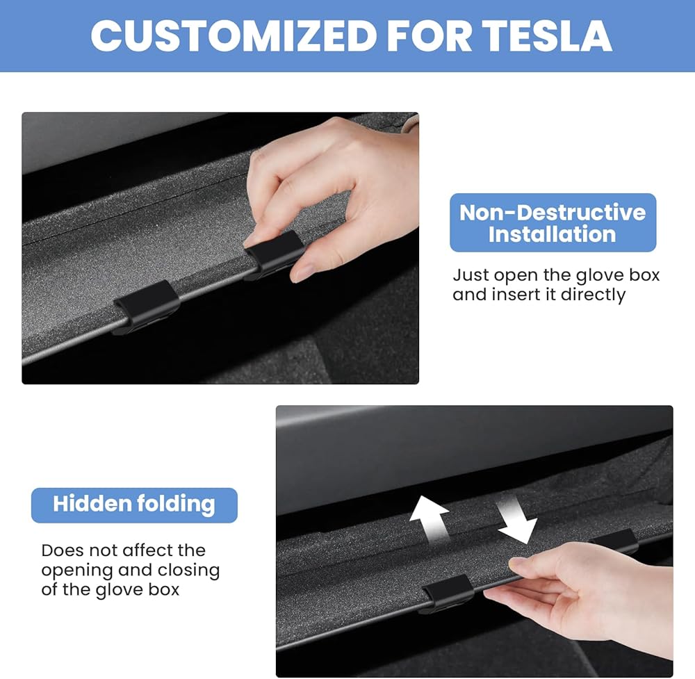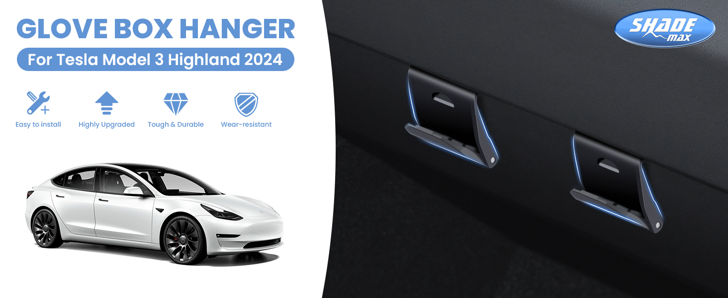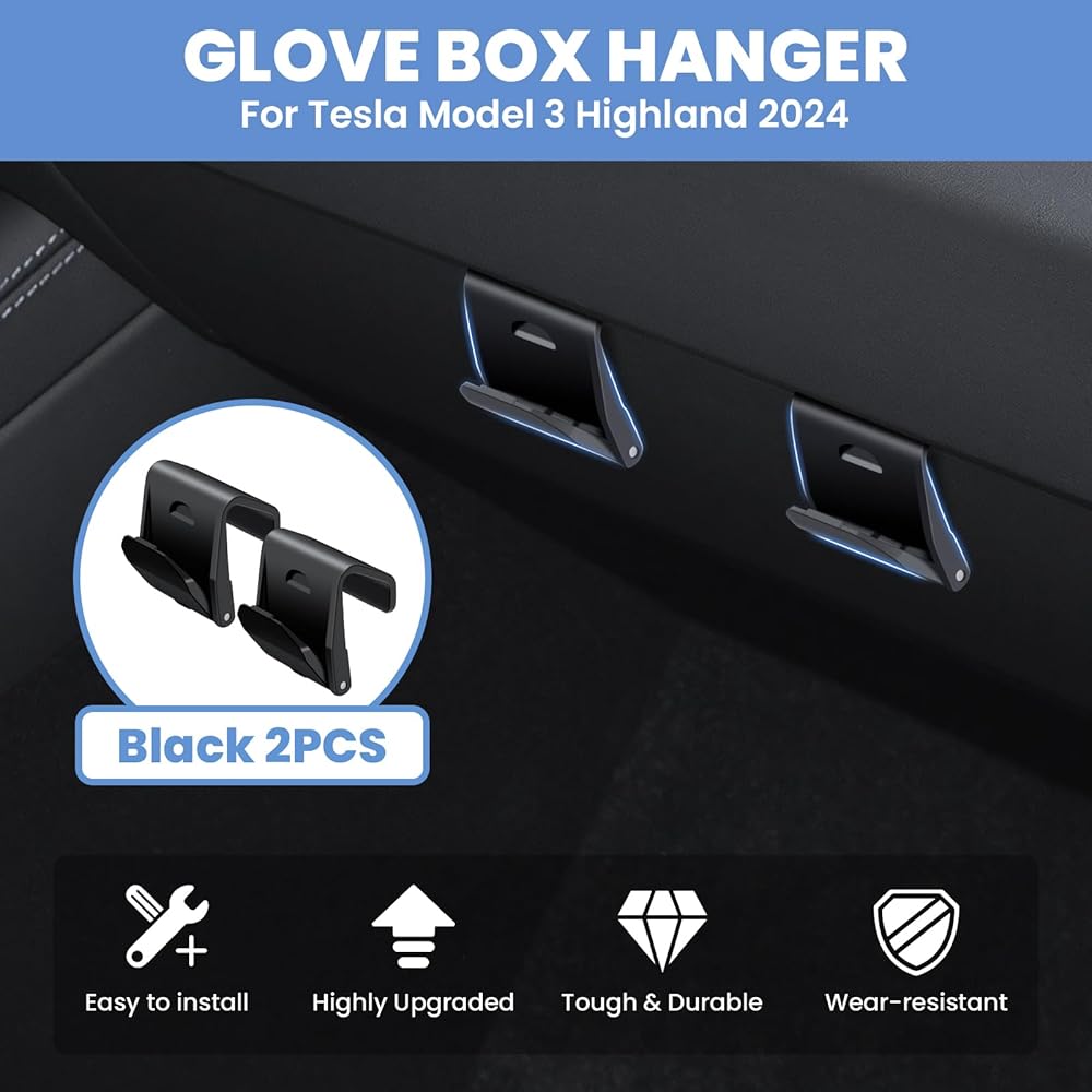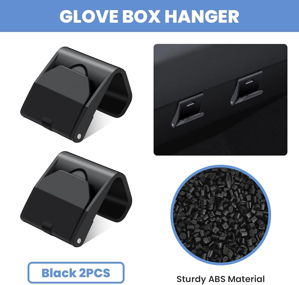 مخصص صالح لخطافات صندوق القفازات 2024 تسلا نموذج 3 صندوق القفازات المرتفعات المنظم حقيبة حامل تخزين شماعات كليب ABS المواد المرتفعات الملحقات الأسود 2 قطعة