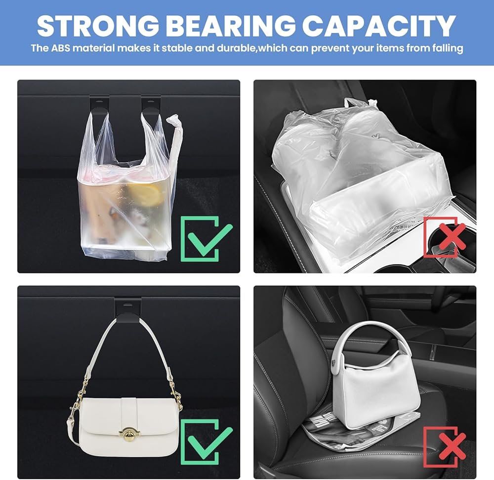 【مادة أكريلونتريل بوتادين ستايرين القوية: خطافات حقيبة صندوق القفازات هذه مصنوعة من مادة أكريلونتريل بوتادين ستايرين المتينة، وهي غير سامة وعديمة الرائحة ومقاومة لدرجات الحرارة العالية. تصميم الحافة الناعمة يمكن أن يمنع خدش البالغين والأطفال.