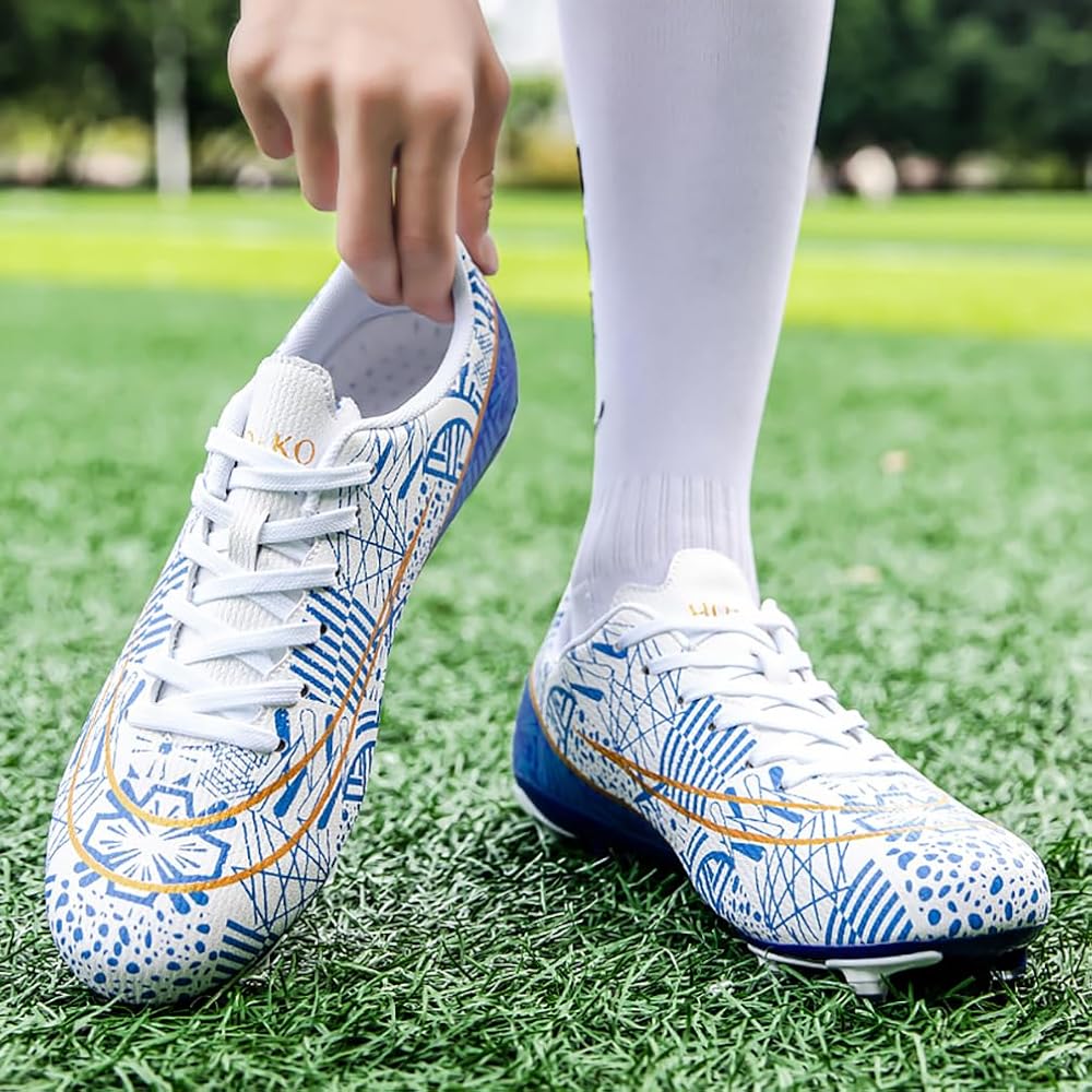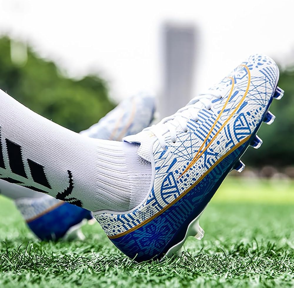 【Wonderful Design】 All parts of the shoes are designed by experienced designers. All the details, including the color and stripes outside the shoes, the length and distance of studs, are the best results of designers' continuous experiments. Pay attention not only to quality, but also to appearance, and cooperate with various styles of jerseys. This product is an excellent football shoe with both comfort and functionality. For competitors, this is a necessary prop to improve the winning rate.