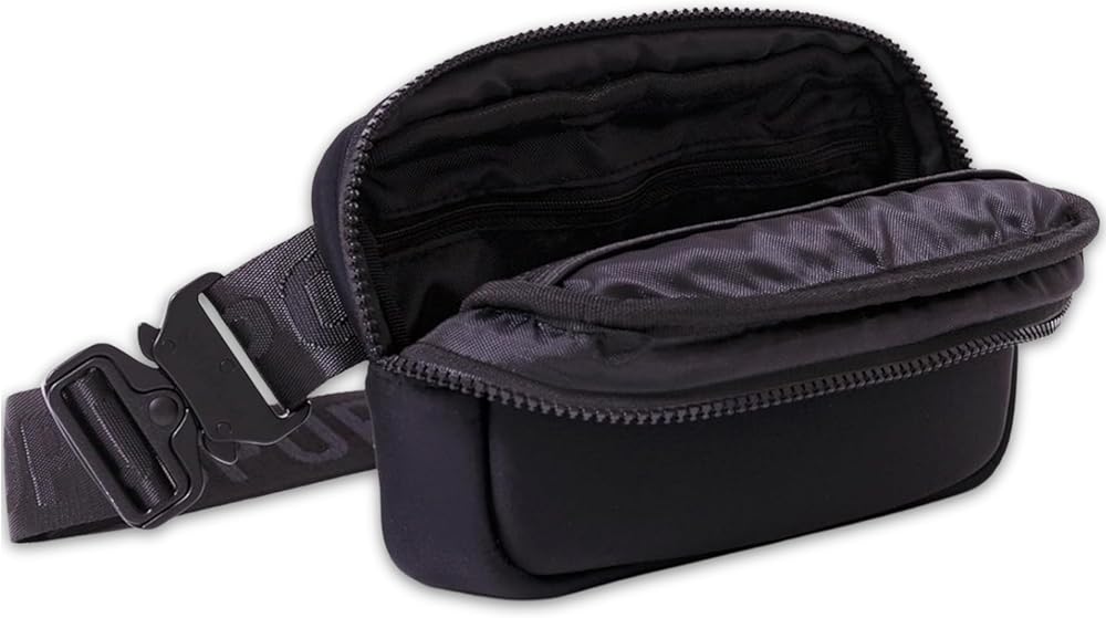Everywhere belt bags - Durable and waterproof waist pack made of 100% lux neoprene, measuring 9x2x6 inches. Features removable buckles and adjustable straps for a hands-free experience.