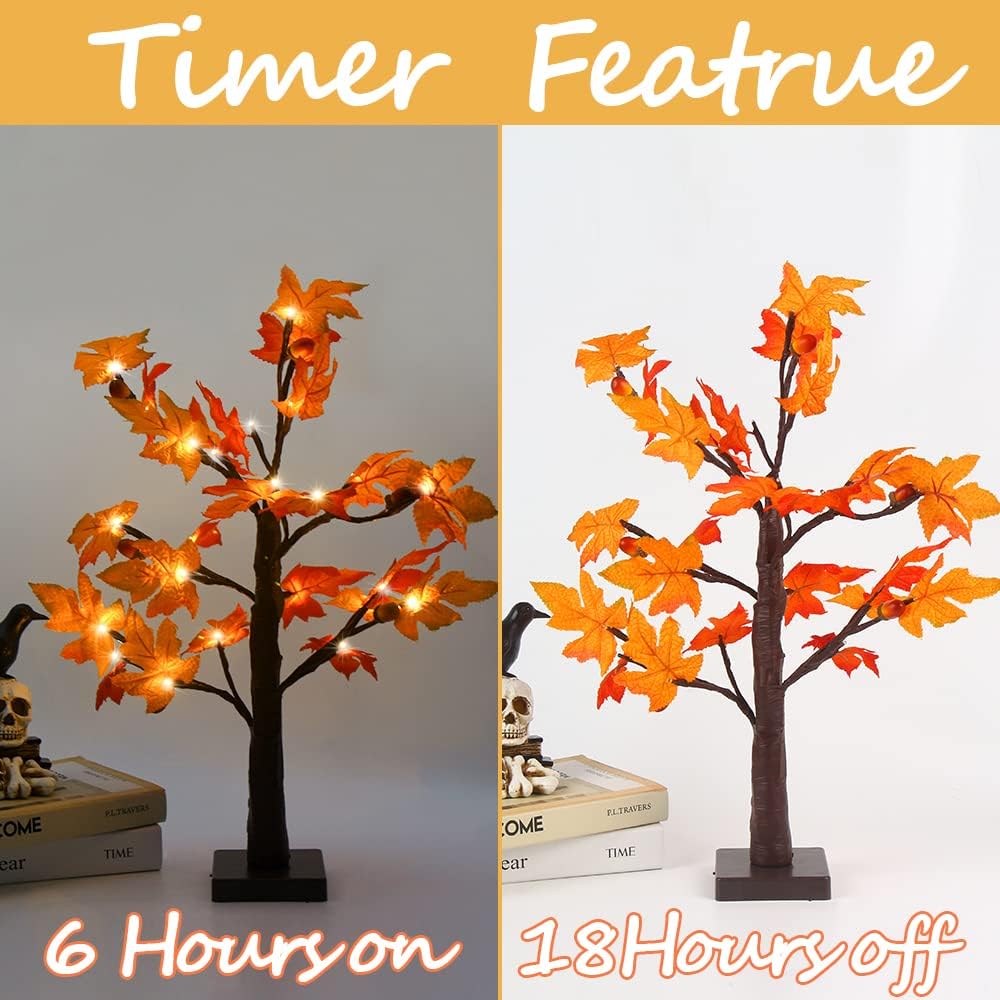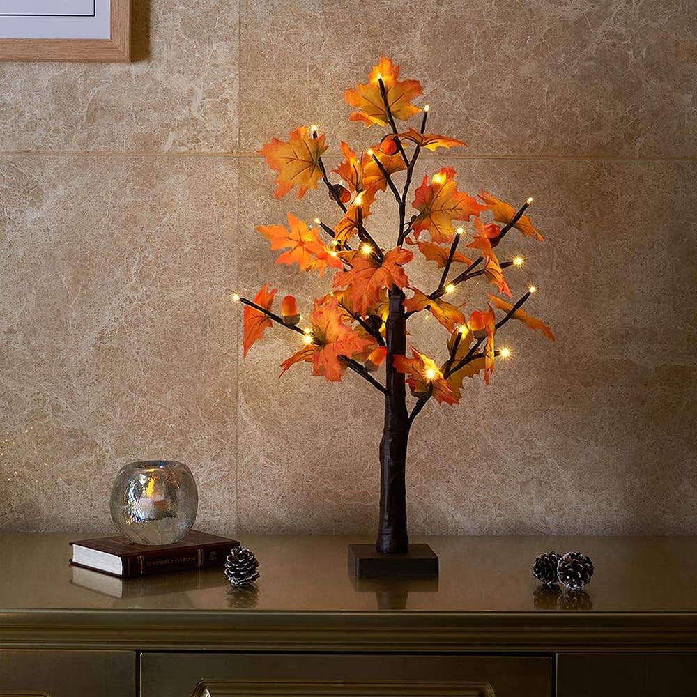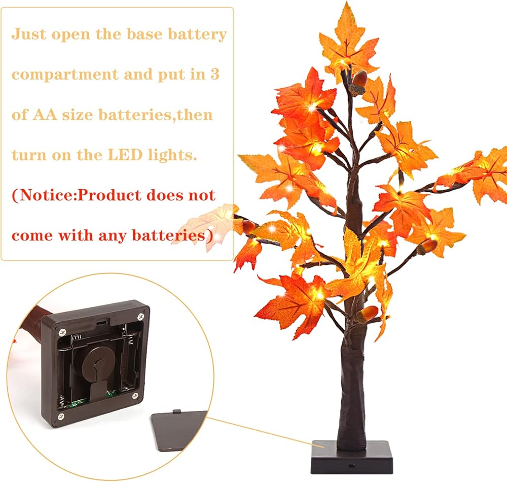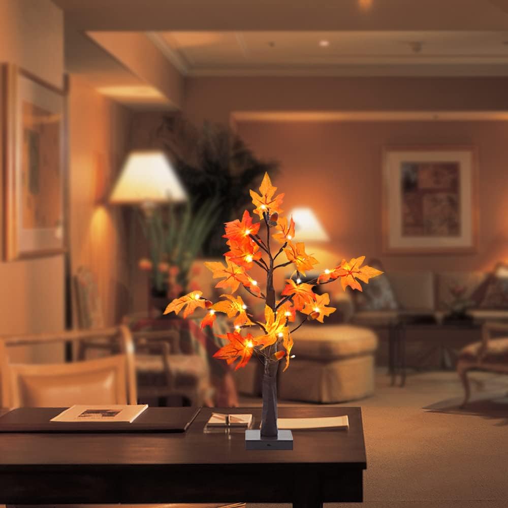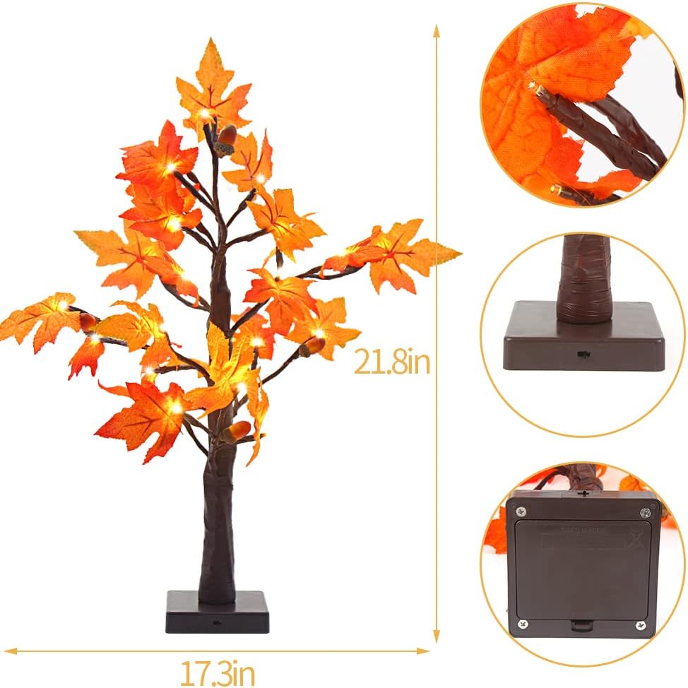 شجرة قيقب صناعية مضاءة بطول 22 بوصة مع 24 مصباح LED تعمل بالبطارية في الخريف على سطح الطاولة تضيء شجرة أوراق القيقب لعيد الشكر وحصاد الخريف وديكورات المنزل الداخلية