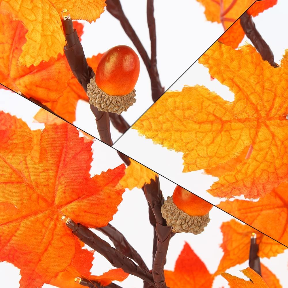 🍁 مزيج مثالي من شجرة أوراق القيقب الخريفية: الارتفاع الإجمالي لشجرة القيقب الصناعية 22 بوصة، الجذع البني متطابق مع 24 قطعة من أوراق القيقب و6 بلوط، مجهزة بـ 24 قطعة من مصابيح LED صفراء دافئة، مما يخلق جوًا قويًا ودافئًا لعيد الشكر ومشهد سقوط لك عائلة