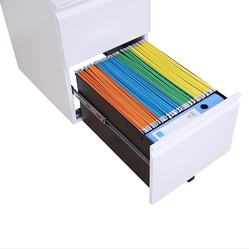 FLEXIBLE FILING ORGANIZER: Drawers accommodate hanging A4, letters, and legal-sized files. A removable partition to keep the files in place when the drawer is not full and can also be adjusted to classify files