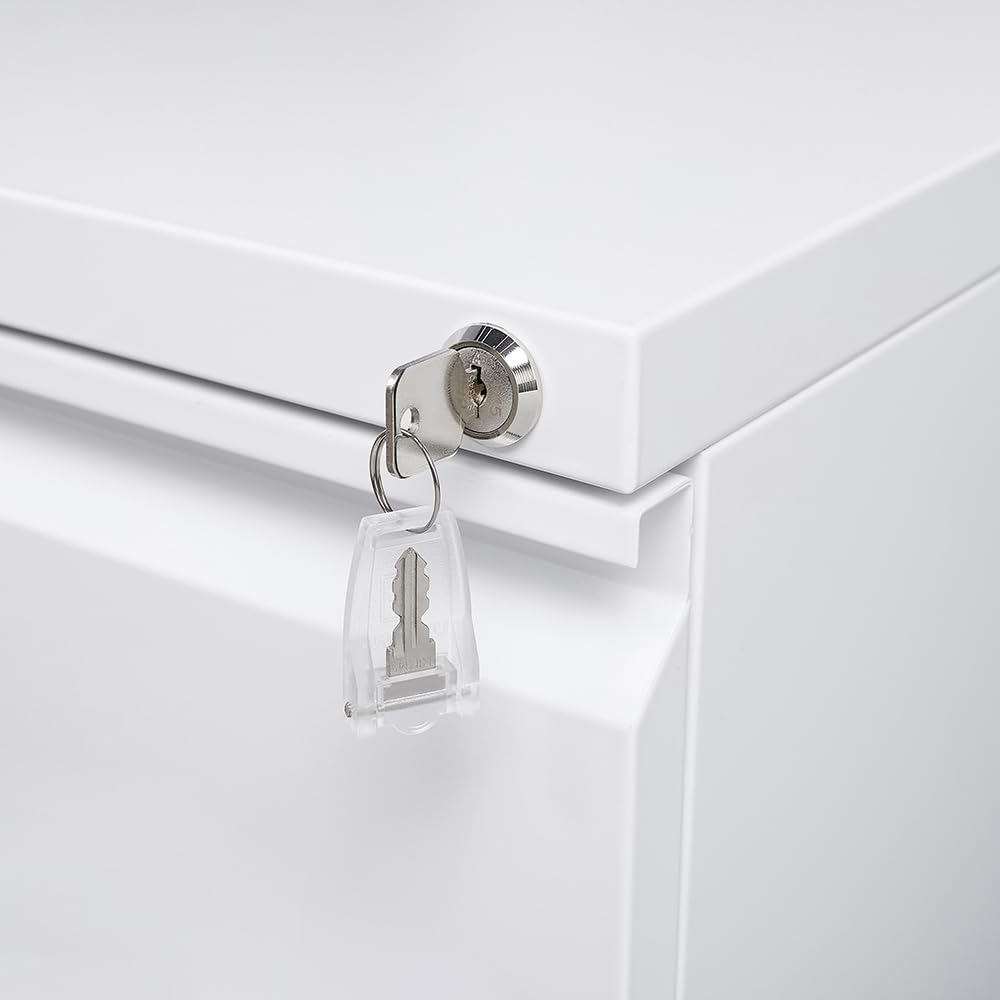 EXTRA SECURITY: This file cabinet includes a central locking system that secures all drawers with a single turn of the key (two keys included). COLD ROLLED STEEL STRUCTURE: It's tougher than standard steel, meaning it's suitable for daily use from you and work colleagues.