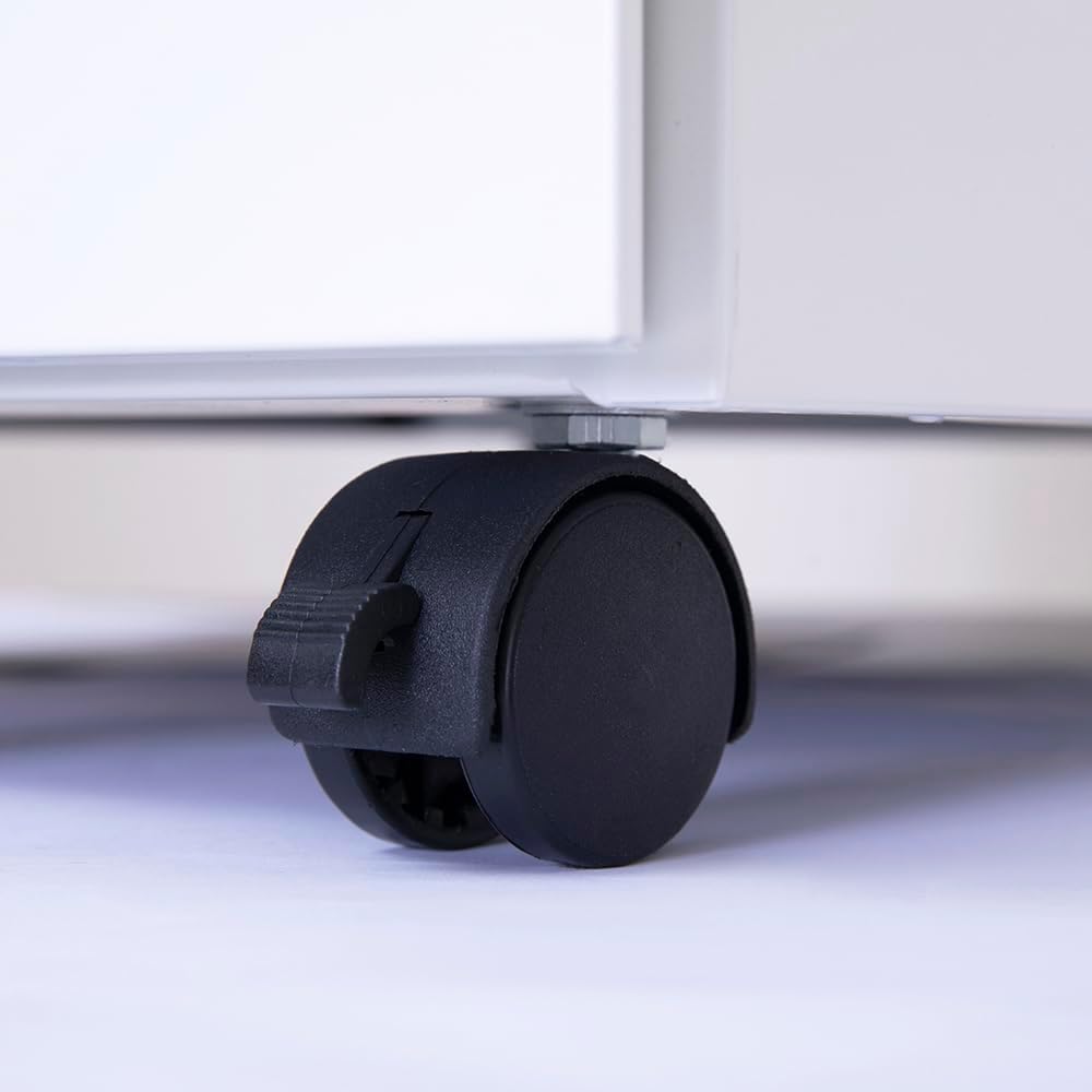 EASY MOVEMENT: 5 universal wheels ensure easy movement, 2 of them are armed with brakes for safety. An extra support caster is located under the drawer to prevent tipping