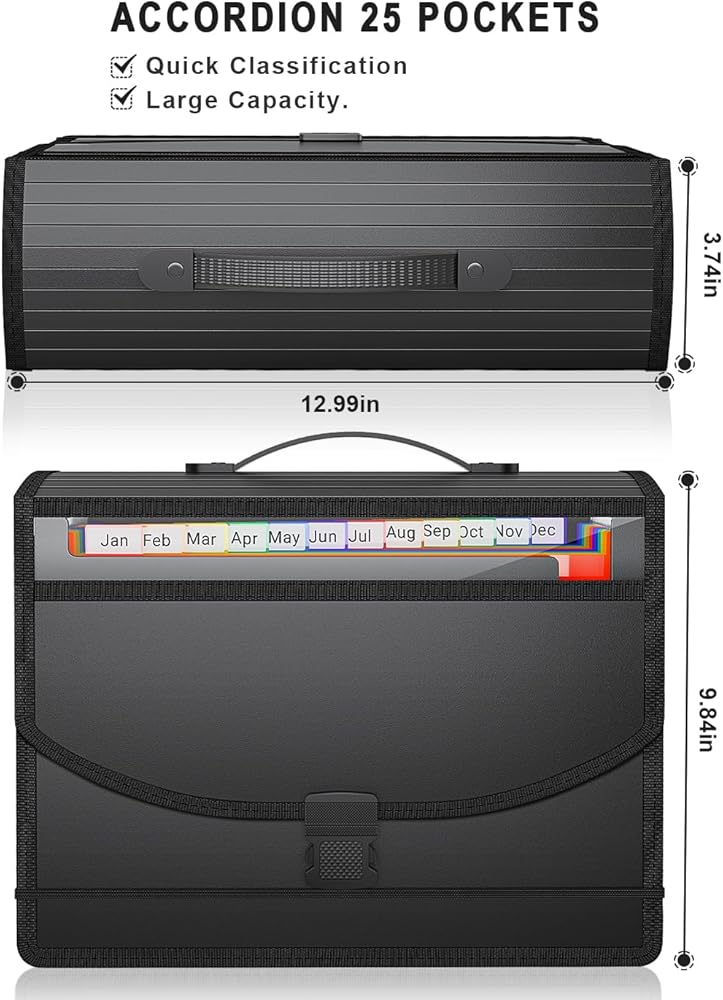 【إغلاق فائق الحمل وآمن】: بالمقارنة مع مجلدات الأكورديون الأخرى القابلة للتوسيع في الأسفل، يتم إضافة مقبض، مما يجعل من السهل جدًا تحريكها. عادةً لا يمكن توسيع مجلدات الملفات الأخرى ذات المقبض البلاستيكي من الأسفل، مما يحد بشكل كبير من قدرتها القابلة للاستخدام. مجلدنا ليس لديه هذه المشكلة. من السهل تحريكها ولها سعة كافية. يوفر إبزيم ABS والشريط المطاطي إغلاقًا آمنًا مثاليًا.
