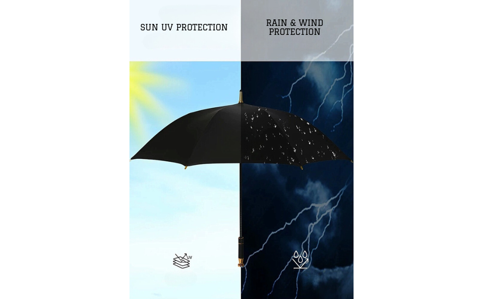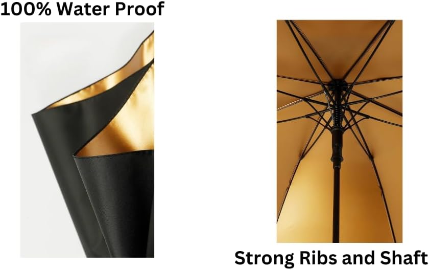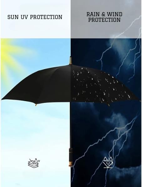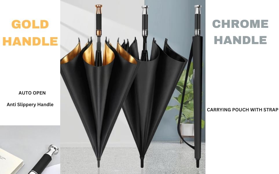 مظلة فاخرة، مصممة لأداء فائق مع حماية فائقة مقاومة للماء من الأشعة فوق البنفسجية ومقبض من ألياف الكربون المفتوحة تلقائيًا ومقاوم للرياح (أسود/كروم)