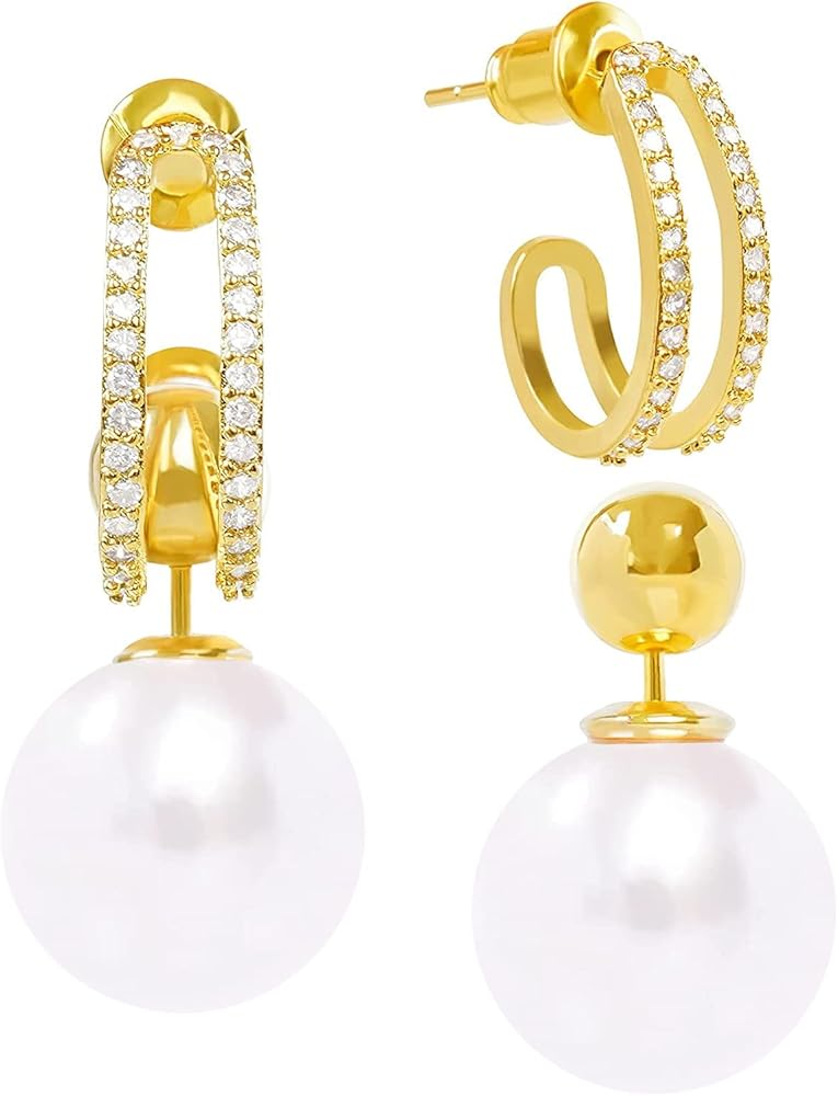 CLASSIC DESIGN: these sterling silver pearl elegant earrings for women, very dainty pearl earrings with diamond, brings an elegant and graceful look to any special occasion.