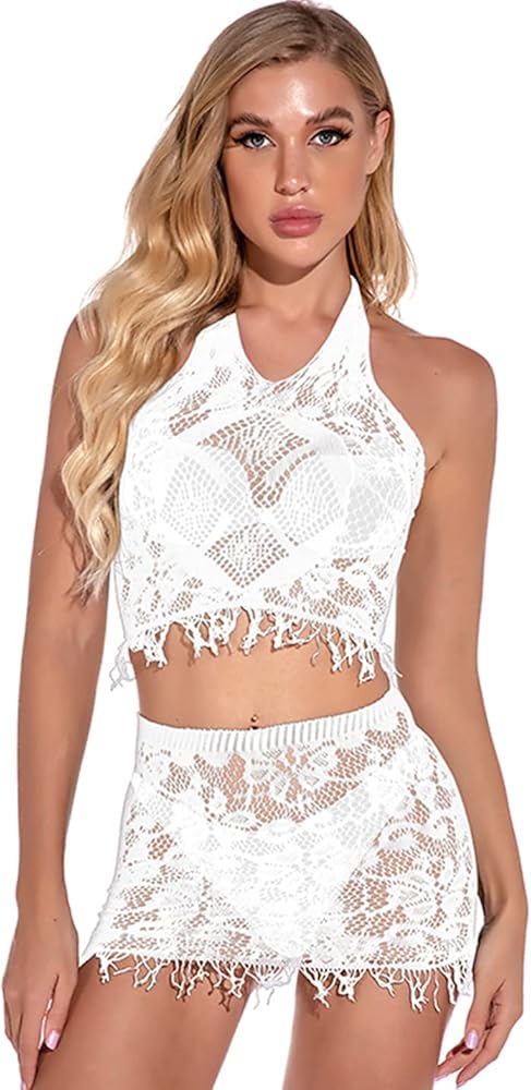 BeiYan Women's Mesh Lingerie Fishnet Mini Dress Babydoll V Neck Two Piece Bathing Suits Free Size