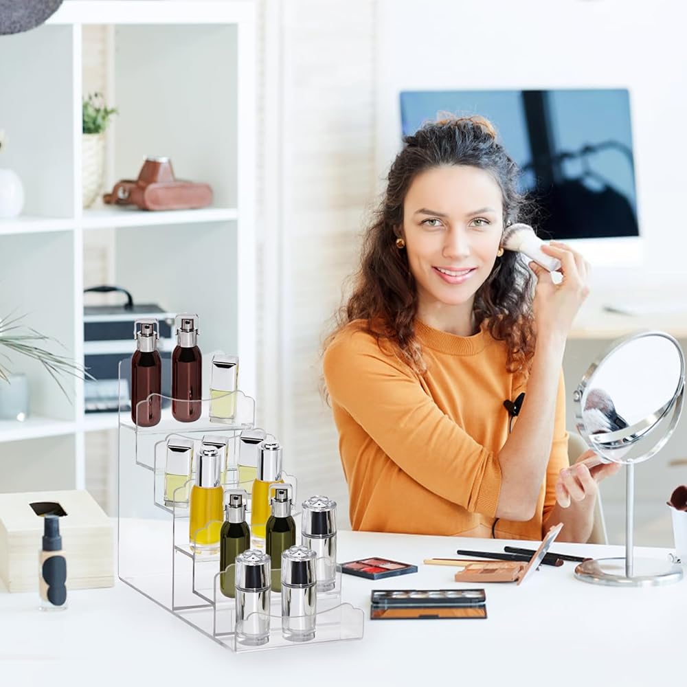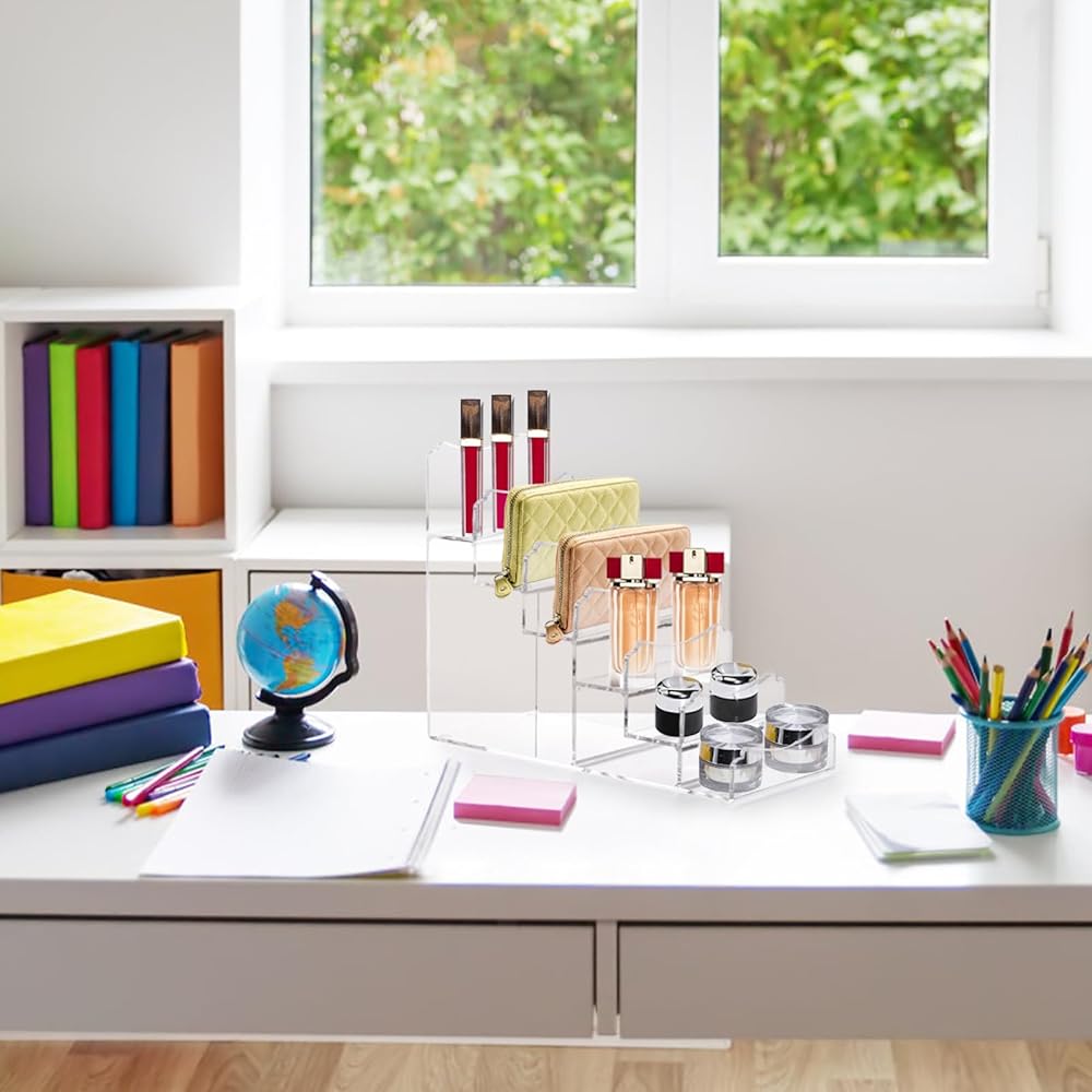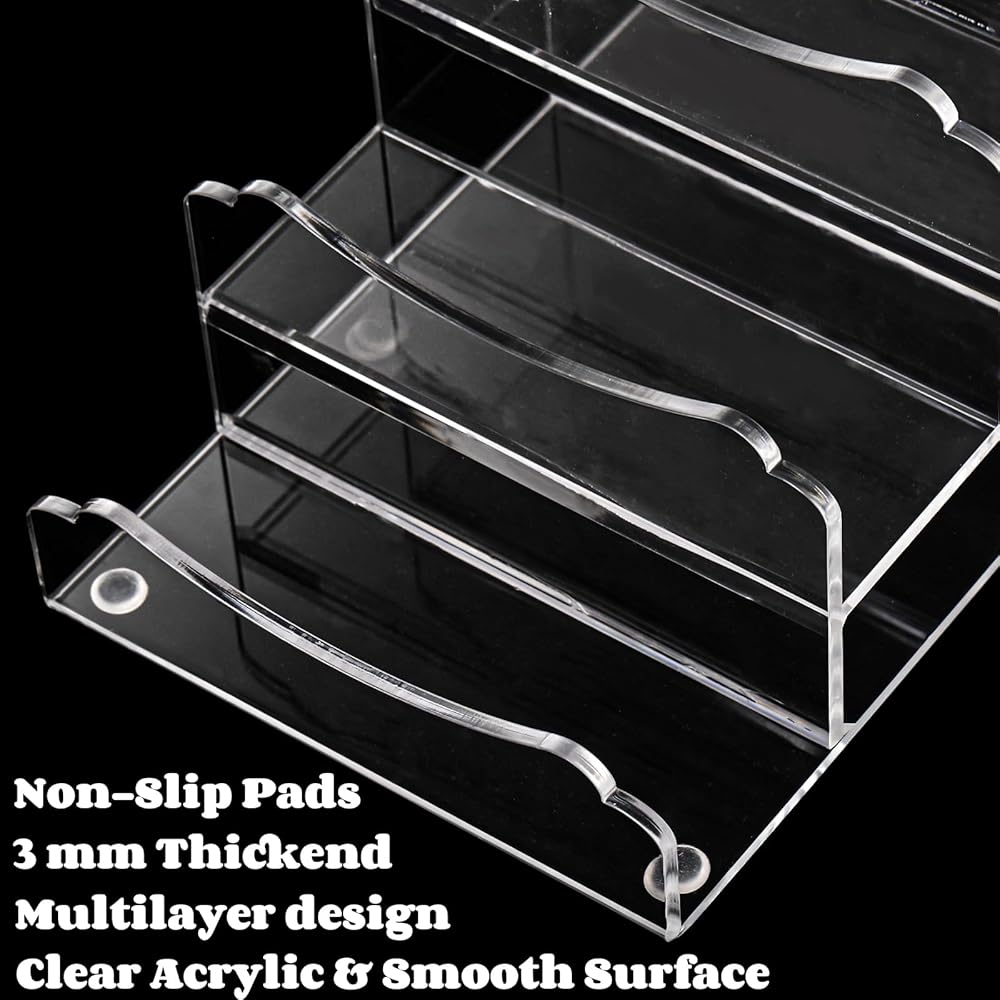 استخدام واسع: حامل العرض الأكريليك مثالي لعرض العناصر المنزلية والمخزنية، استخدمه لتنظيم وعرض النظارات الشمسية والمحافظ والعطور وطلاء الأظافر ومستحضرات التجميل والشخصيات والمقتنيات والمزيد