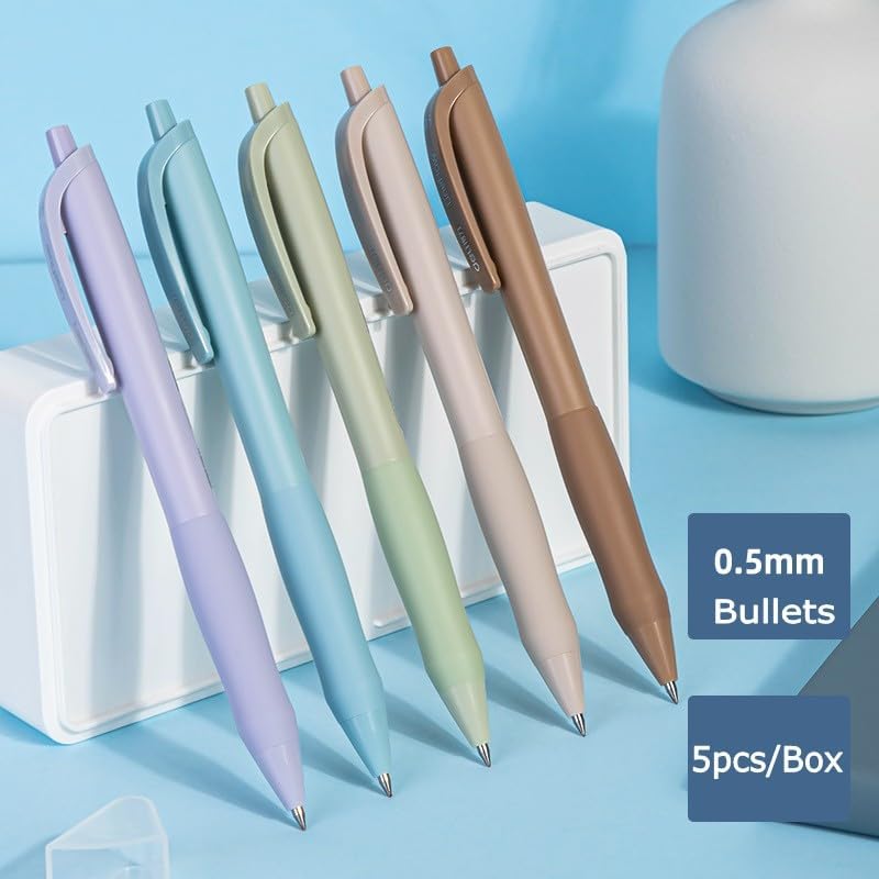 5 قطع من أقلام الحبر سريعة الجفاف. إنها أقلام لطيفة قابلة للسحب للوازم المدرسية الجمالية، واللوازم المكتبية، واليوميات، وتدوين الملاحظات، والتخطيط.