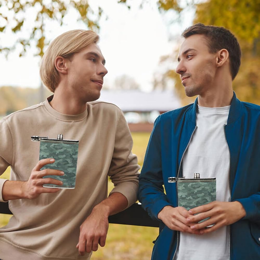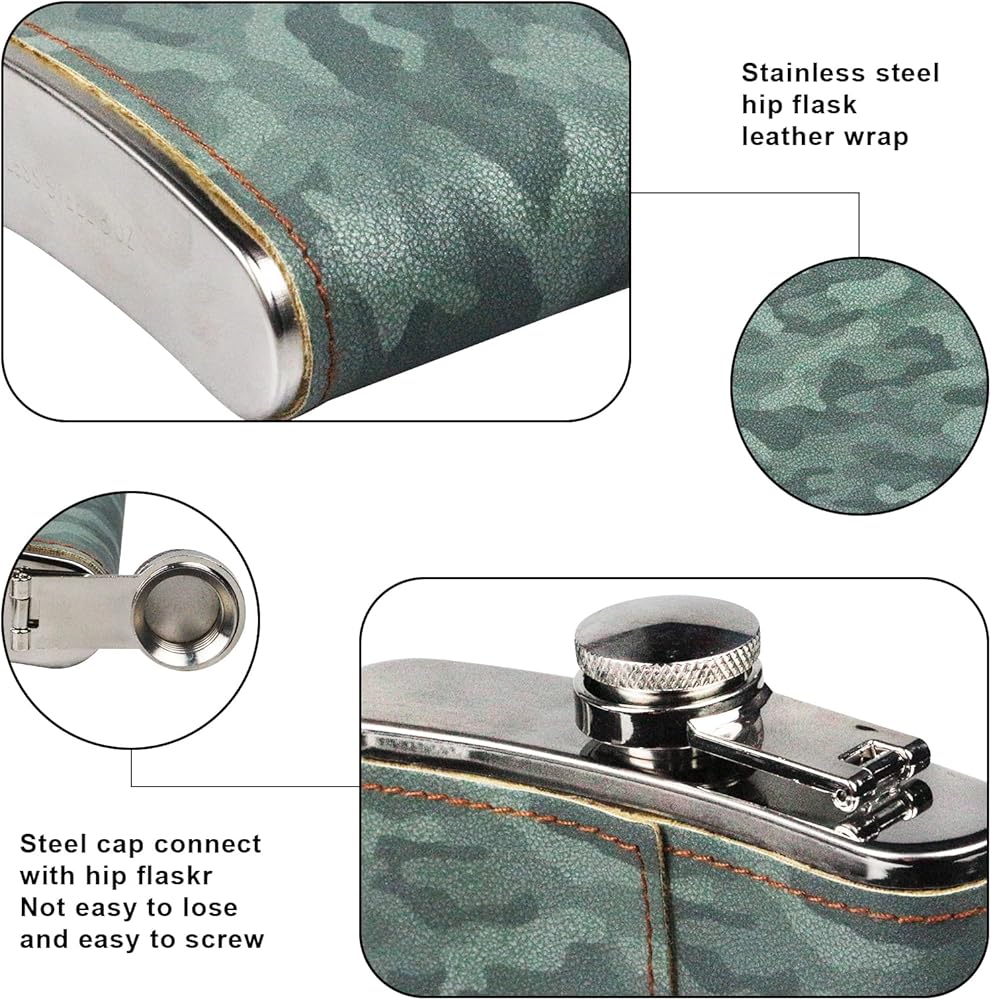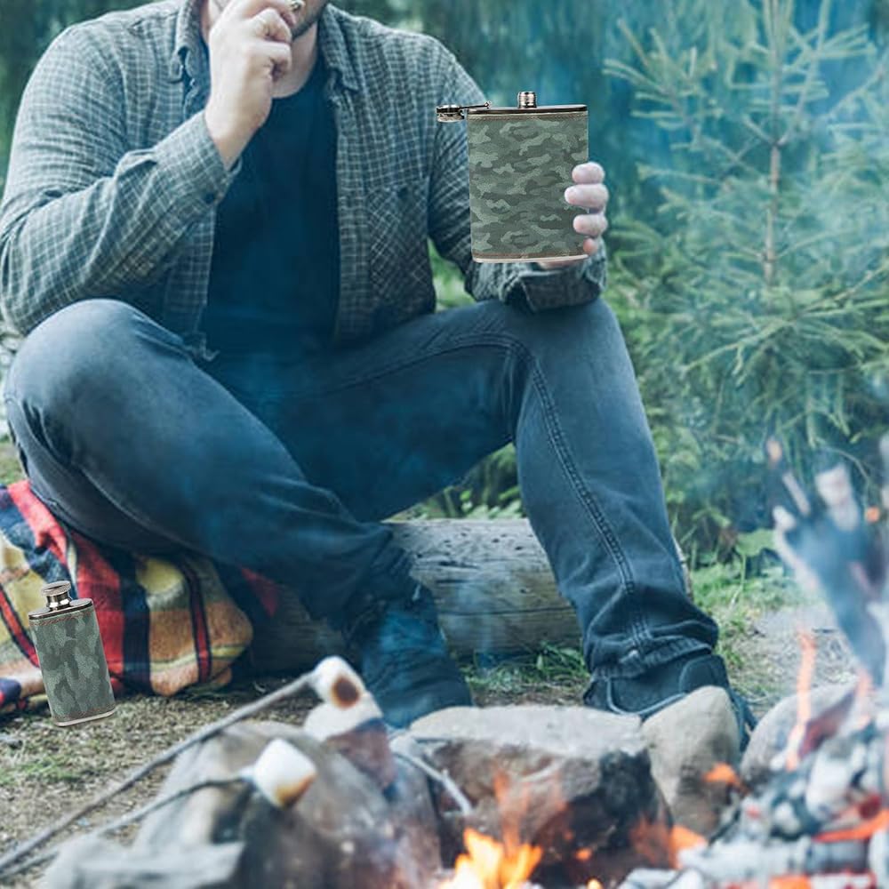Hip Flask Gift Set, Hip Flasks for Liquor for Men with camouflage Leather Cover, 8 Oz Hip Flask, 18/8 Stainless Steel Hip Flasks, Flasks for Liquor for Men Gift Box
