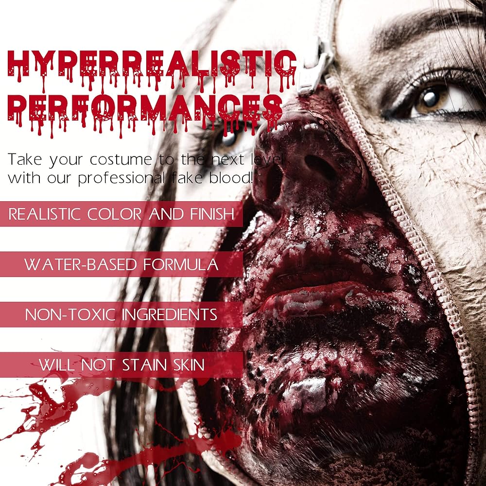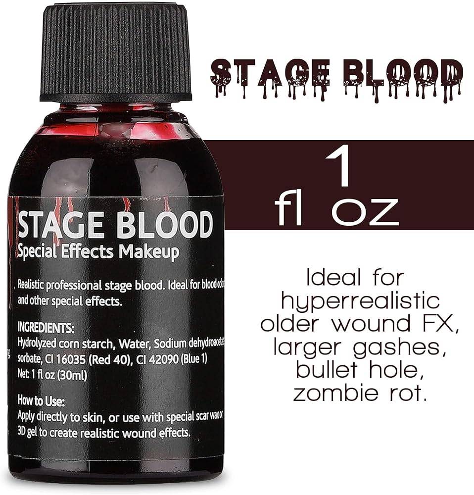 【SKIN FRIENDLY & NON-TOXIC MATERIALS】-All the items are made with non-toxic,skin safe ingredients. Fake Bloods are water-based and syrup-based, so it's as easy to remove as it is to apply, no need to spend hours getting it off. Also both are tried, tested and proven not to stain your skin and washes out easily with soap and water.