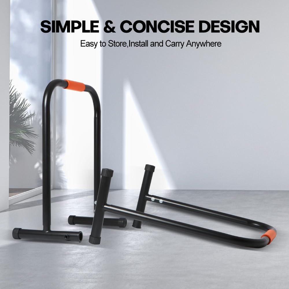 Features:Detachable and portable dip stations could be carried to anywhere, perfect fit for home gym, office workout, outdoor exercise. Easy to store in corner, wardrobe, under bed or desk, saving space to store