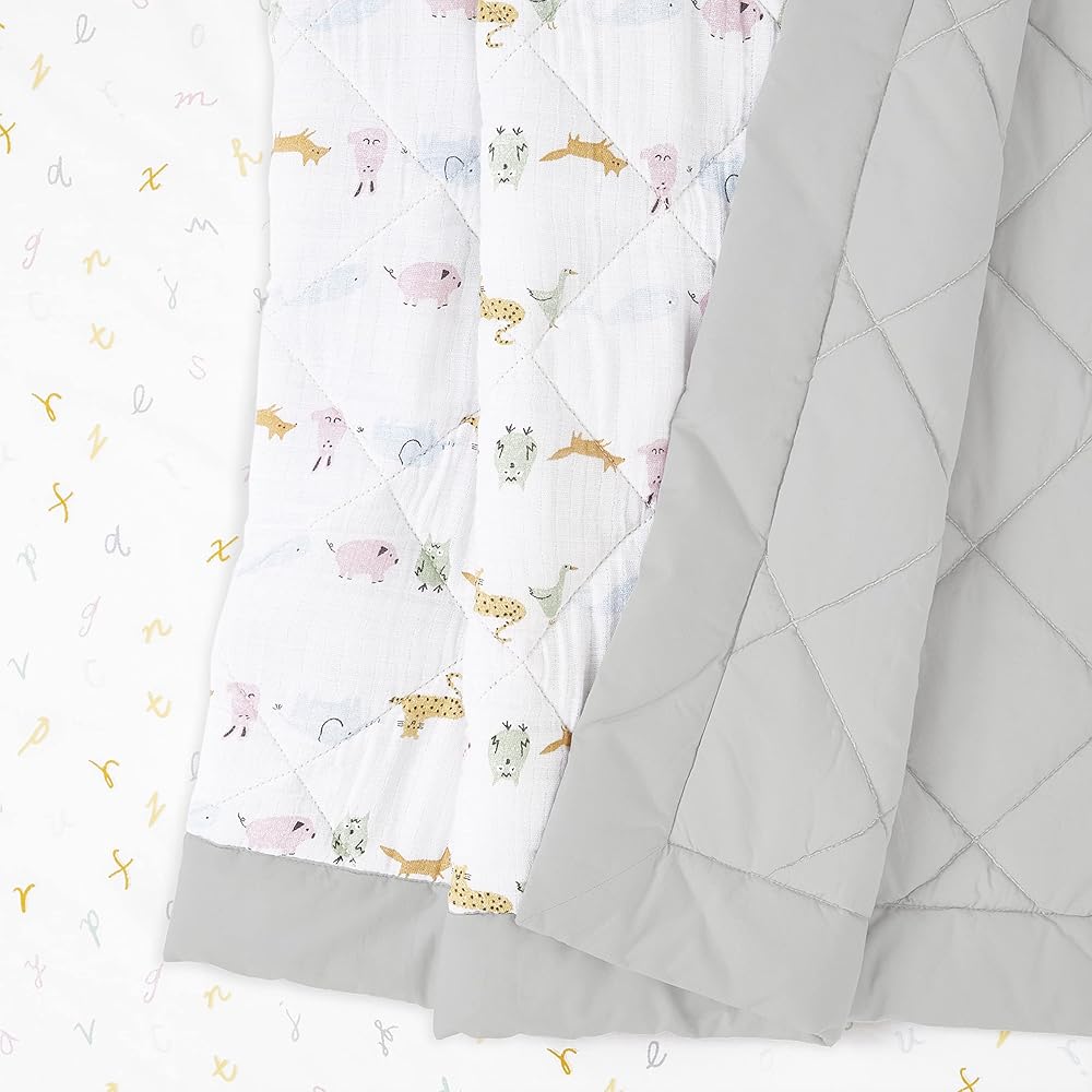 أكمل المظهر - قم بإقران طقم الفراش اللطيف هذا مع ملاءات متطابقة وغطاء وسادة تغيير الحفاضات لتصميم غرفة أطفال متناسقة تستحق غرامًا.